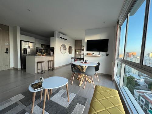 A 7-minute walk from VIVA Shopping Mall in Barranquilla, BH-801 Distrito 90 Luxury Suite offers accommodations with access to a sauna. This property offers a private pool, free Wifi, and free private parking. Guests can use a garden. Offering a terrace and city views, the spacious apartment includes 2 bedrooms, a living room, satellite flat-screen TV, an equipped kitchen, and 3 bathrooms with a shower. Towels and bed linen are offered in the apartment. This apartment is allergy-free and non-smoking. Buenavista Shopping Mall is a 18-minute walk from the apartment, while Church of the Immaculate Conception is 2.2 miles from the property. Ernesto Cortissoz International Airport is 10 miles away.
