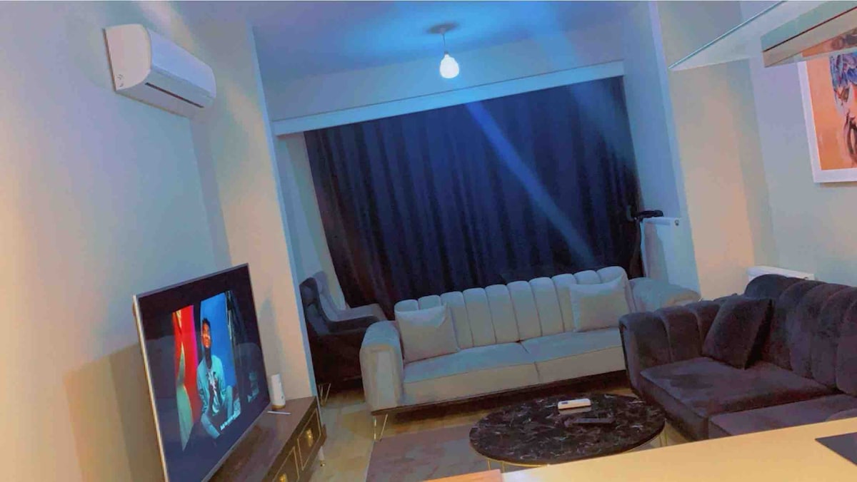 The apartment consist of two bed rooms and one big living room with AC with closed kitchen and two toilet with balcony with amazing view on mountains and Ataturk stadium