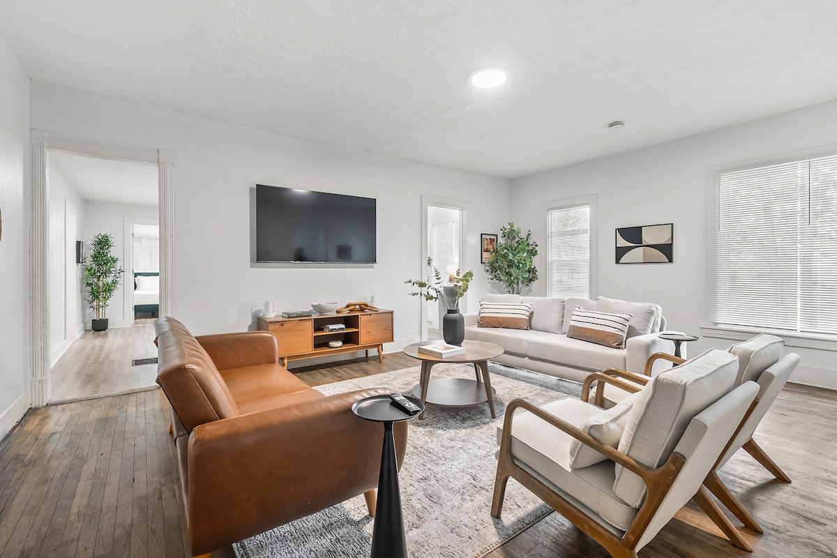 Enjoy this spacious 2BR main level apt located downtown Battle Creek. This house is a Triplex, the entire 1st floor apartment is yours to enjoy. Fully equipped kitchen with everything you will need to cook a yummy meal. Master bedroom has a full bathroom attached and king bed. Walking distance to Bronson Hospital, Parks, Restaurants, parks and Trails. Minutes away from grocery stores and shopping. Free parking on site and fully self check in process with smart locks.