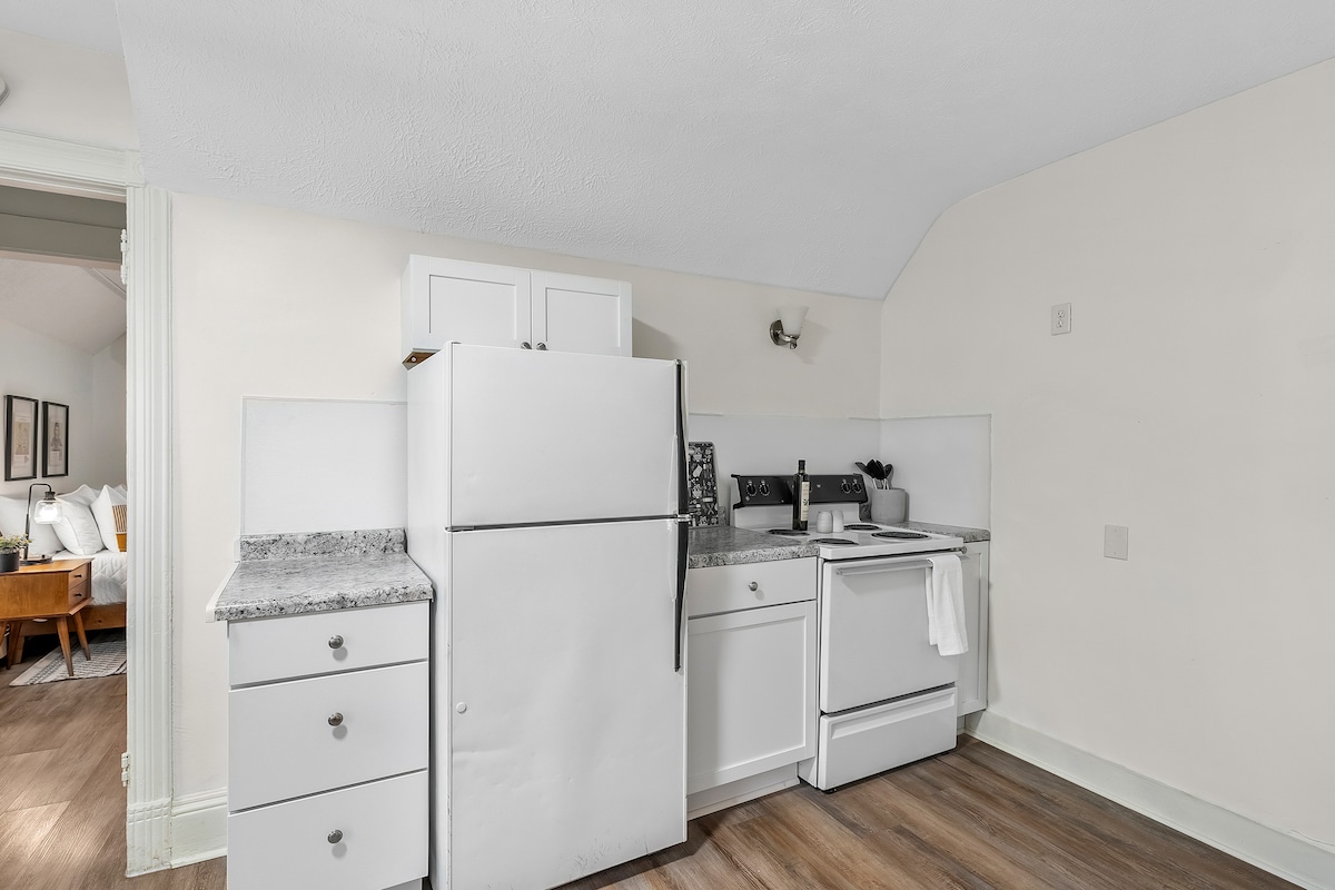 Step through the door and feel time melt away like butter on warm toast. Welcome to The Corn Flake Cottage, where the golden age of American breakfast comes alive in every carefully curated corner of this enchanting 1-bedroom, 1-bathroom second-floor studio.