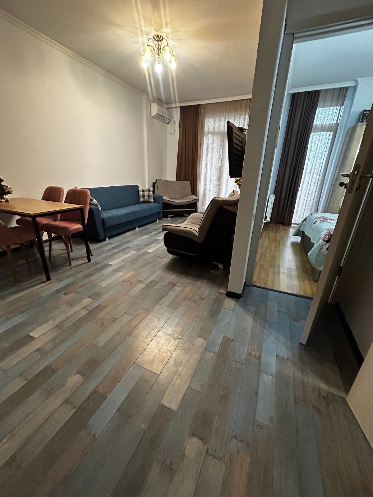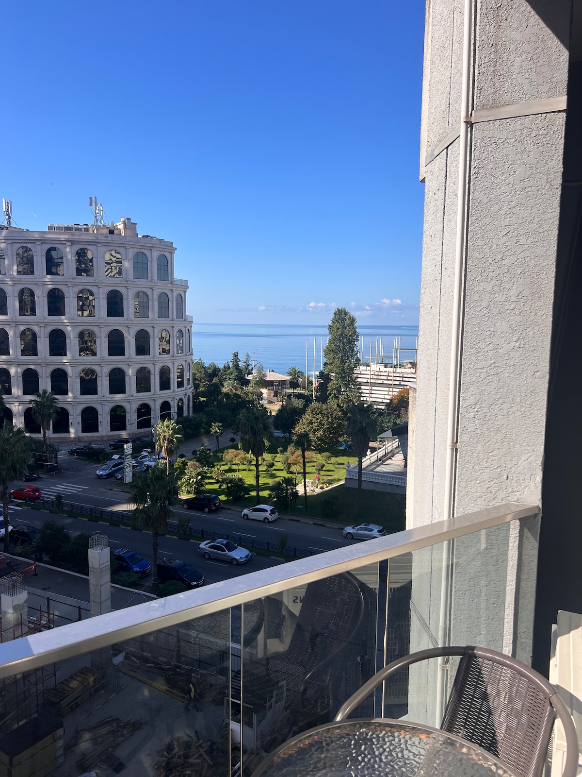 Cozy studio 33`m with bathroom with shower, kitchen, spacious double bed, folding armchair-bed. There are all the necessary utensils, mini-fridge, wine glasses. Air conditioning maintains a comfortable temperature in the apartment, and dedicated Wi-Fi and TV help fill your free time and be always in touch. A balcony with panoramic views of the sea, mountains and city streets from the sunny side will be your favorite place for a perfect morning and a magical summer evening along the Batumi coast.