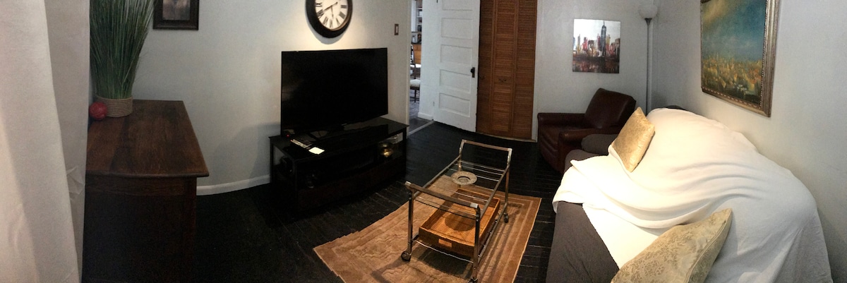 Large second floor walk up studio close to the river and parks. This is a great spot for those who spend time on the water as it’s only a half mile or 13 minute walk to the boat launch. This unit has a window AC unit which keeps the place cool and a large 65” smart TV for a night time movie!