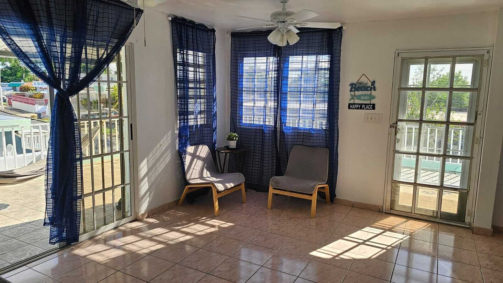 Bayamón es un lugar céntrico de P.R. se destaca en la posición geográfica turística del Área Metropolitana ya que todos los puntos turísticos partiendo desde este lugar se transita y tiene un acceso más rápido en las carreteras principales del país para poder turistear y conocer a P.R. Los huéspedes tienen disponible todo el apartamento del primer nivel. El apartamento tiene 2 habitaciones con cama tamaño Queen. 1 baño, sala, cocina y la terraza marquesina que tiene una vista rural de hermoso paisaje.