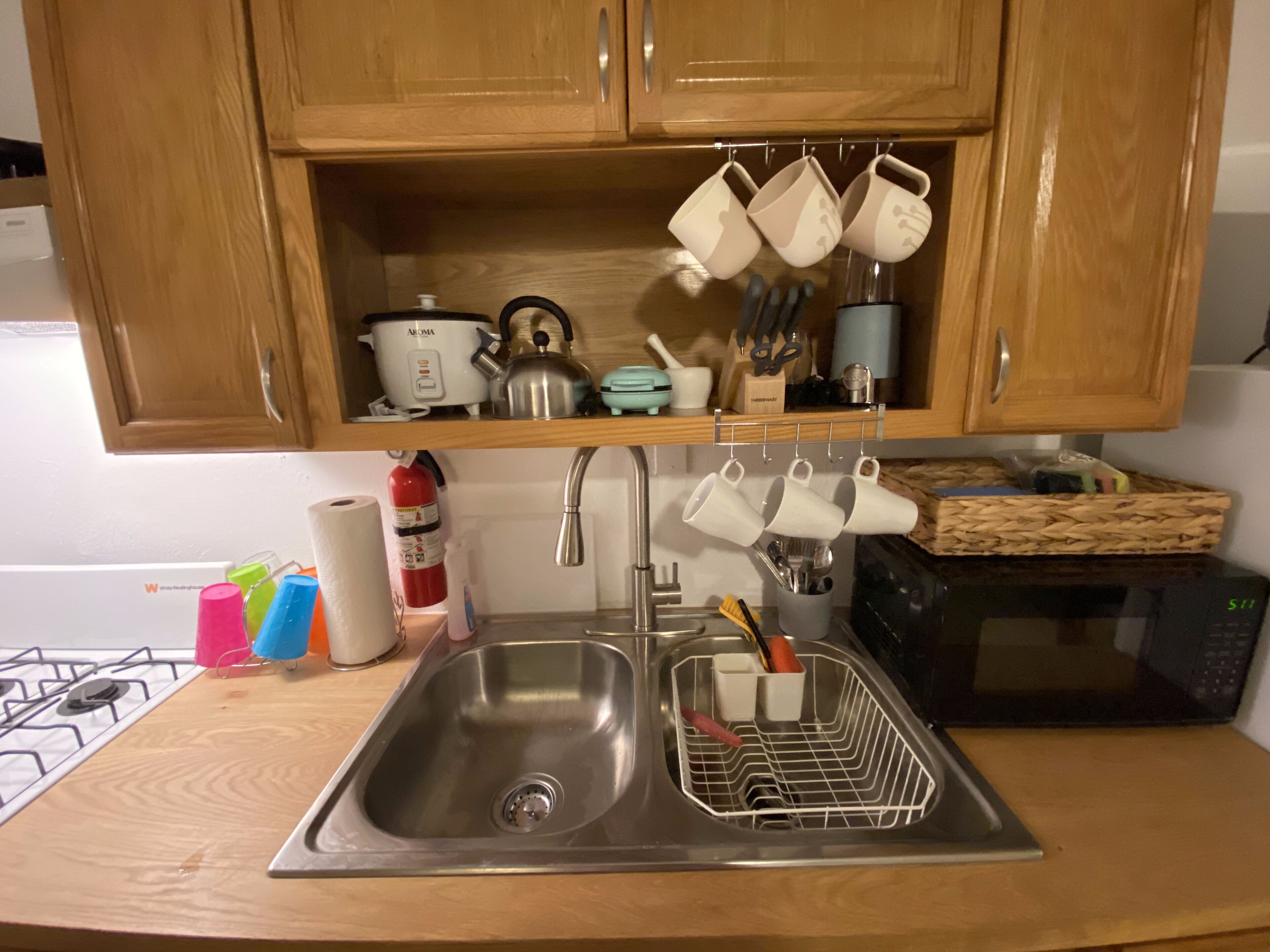 A fully equipped studio that will become an extension of comfort, we have a wide variety of appliances: Air Fryer, Electric Grill, George Forman Electric Grill and Panini, Rice Cooker, Blender, Coffee Maker, Kettle, Toaster, Stove, Microwave and Steam Iron for the clothes.