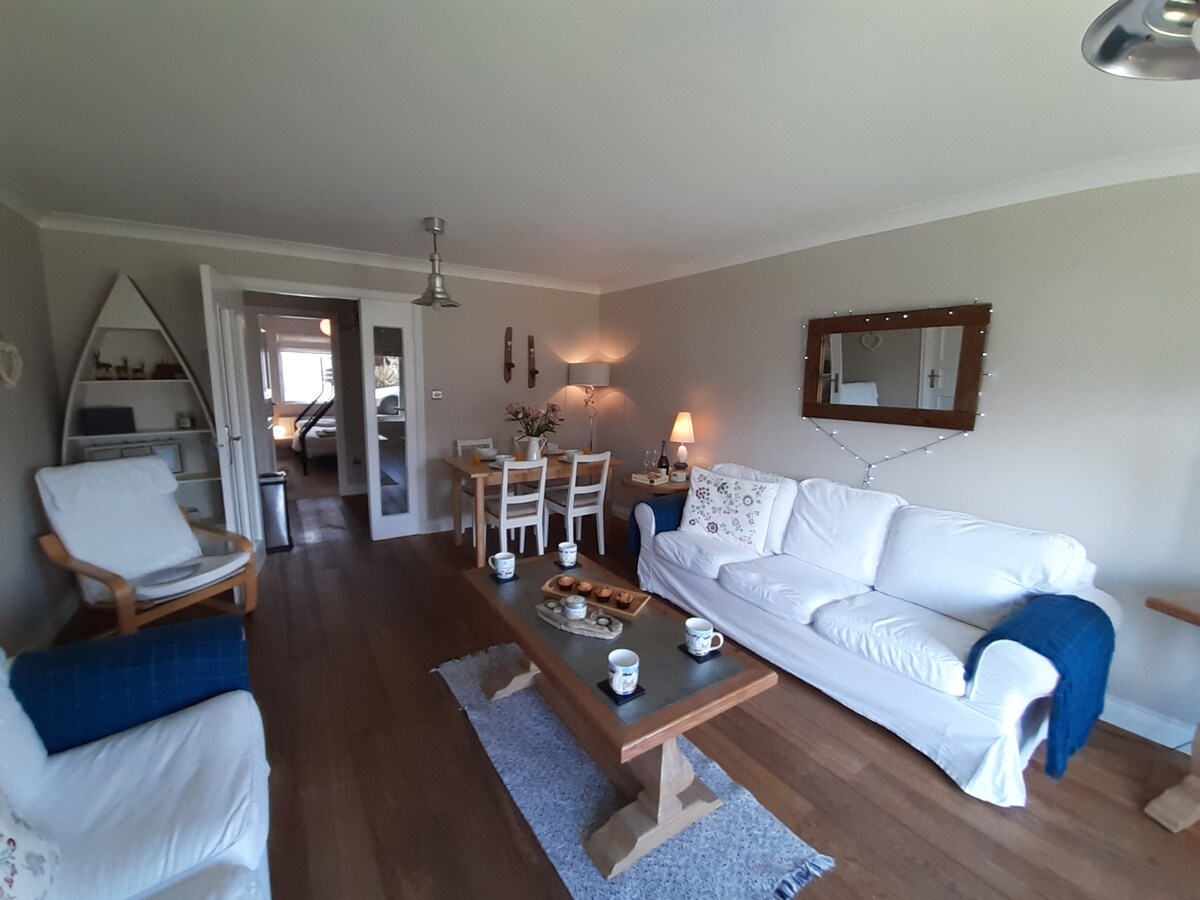 Beachcombers is ideal for someone on their own, couples or families. Sleeps 4 adults but up to 5 if you have children able to use the top bunk. Free parking at the apartment.. The grass area outside is ideal for children to play .