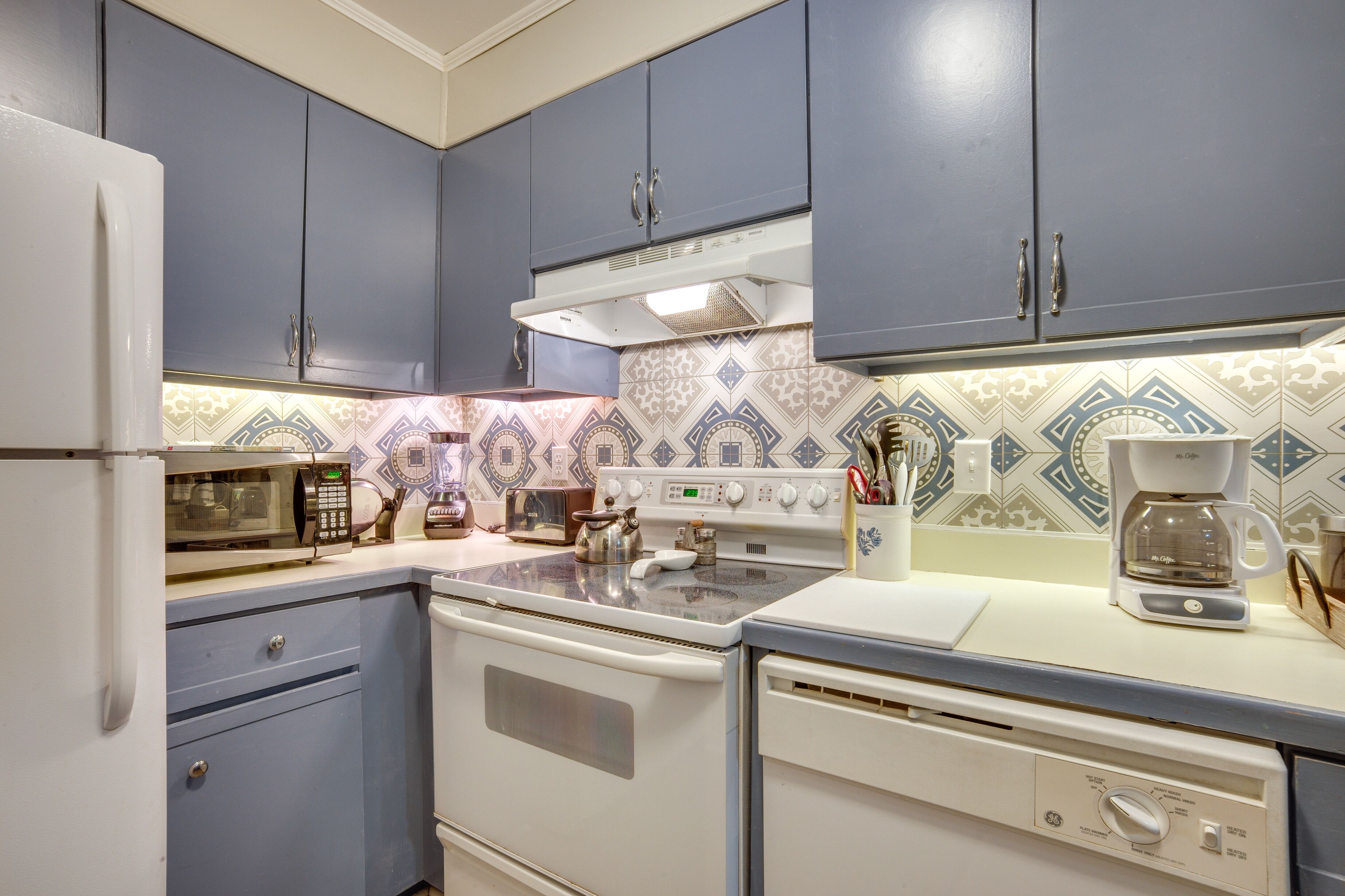 Prepare a home-cooked meal in the kitchen, complete with an oven, a stovetop, and a refrigerator, as well as a coffee maker and a microwave. And you won't have to pack extra clothes, because you'll also have access to laundry facilities. Other amenities include air conditioning and heating.