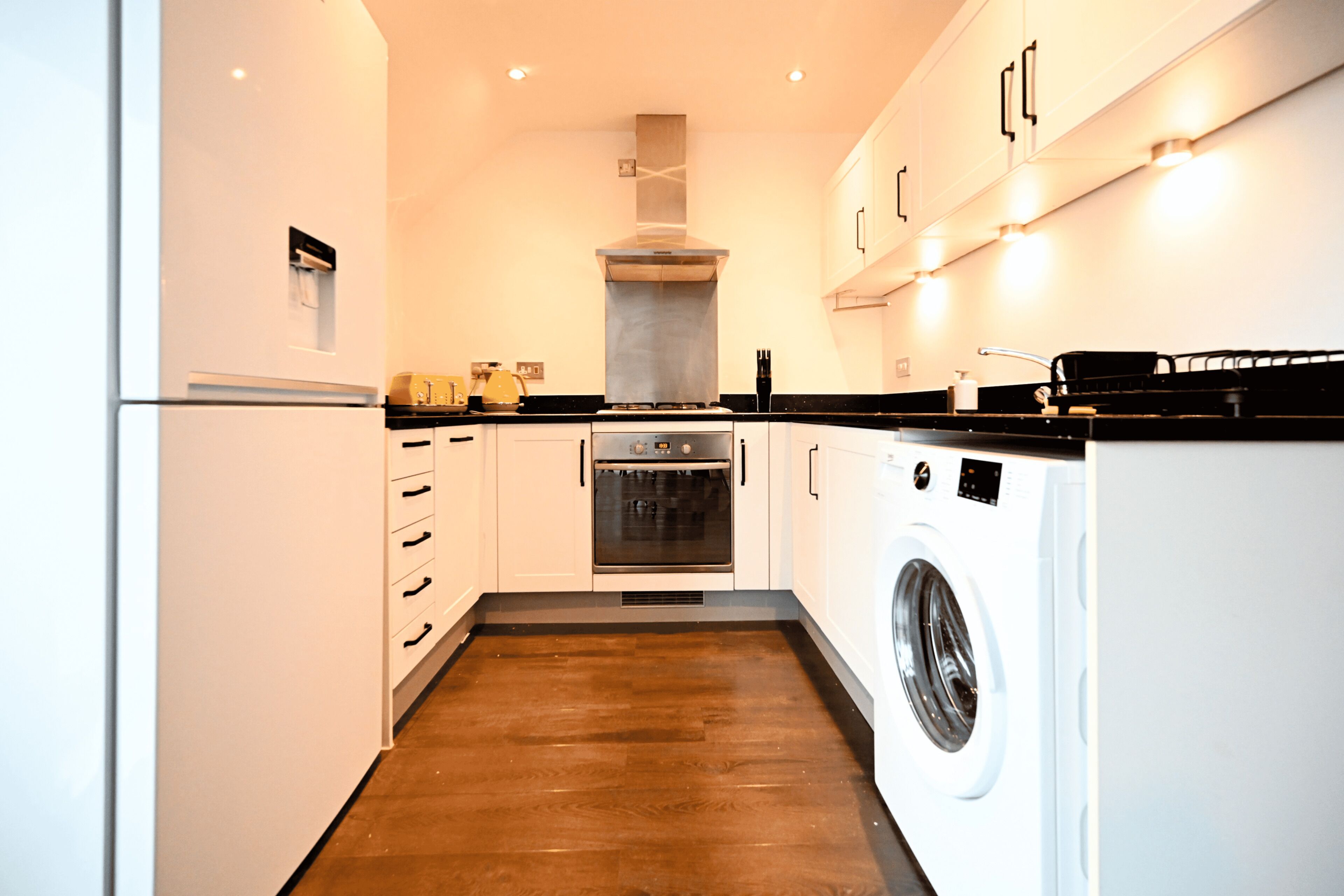 ➞ All our serviced accommodation properties come with freshly-laundered linen. We also provide complimentary toiletries for you to get started with your stay. After you get settled in, you can then purchase whatever you need from the variety of local shops, which are a walking distance away from your Homely Space. Our guests are also welcome to use the iron and hairdryer.