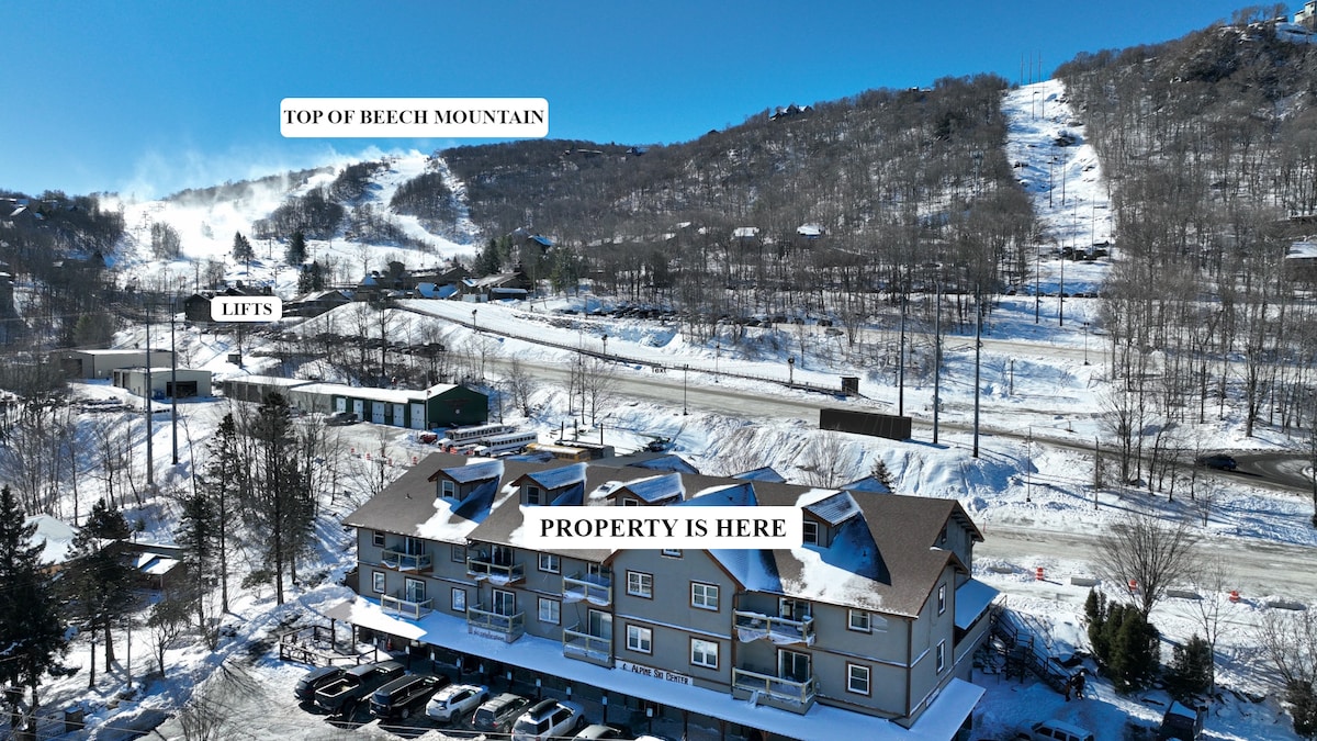Enjoy the mountain views right off the back deck of a 2 bedroom 2 bath apartment, just 3/10th of a mile from the Ski Beech entrance. Pack the skis and be the first to the lifts. Take a summer stroll to the brewhouse, concerts, and various events on the slopes.
