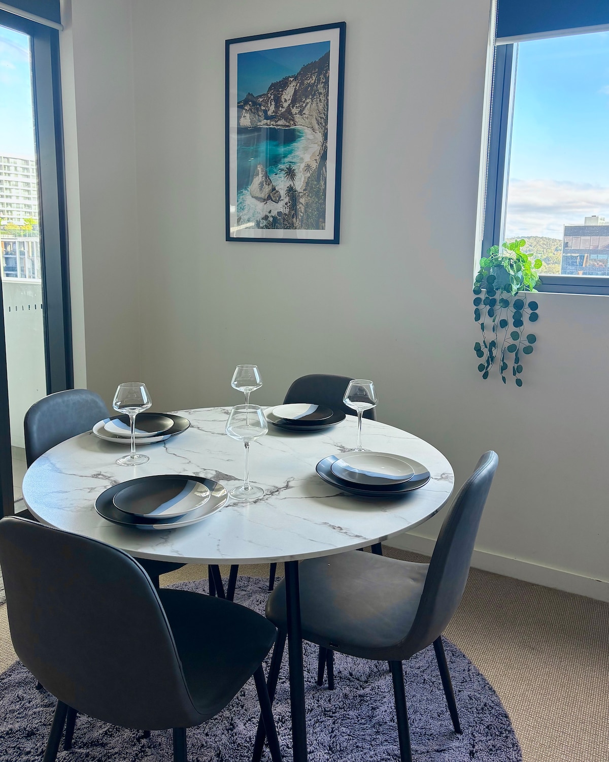 Our Mindyigari apartment is a stylish modern 1-bedroom apartment with all the facilities you could need for a business or holiday stay, including a car park, fast internet and a fully equipped kitchen.