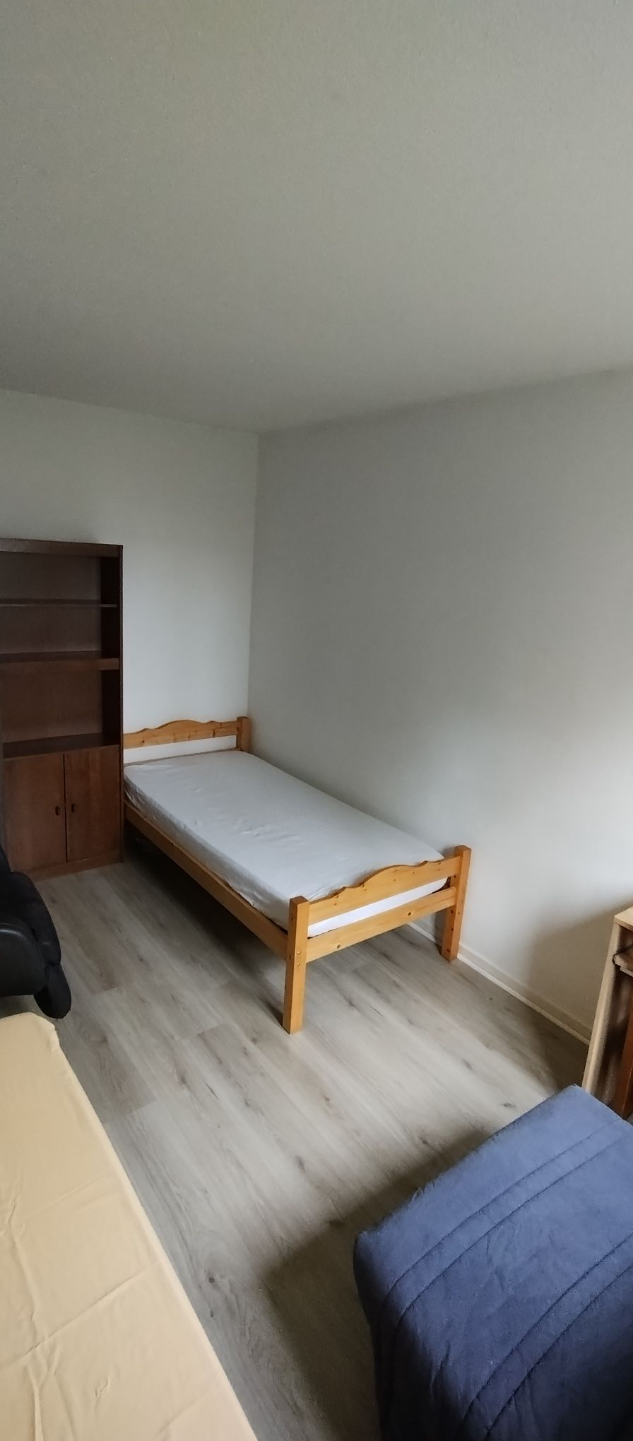 The bedroom for one person has a 90 bed, wardrobe, desk, and an annex with wardrobe.