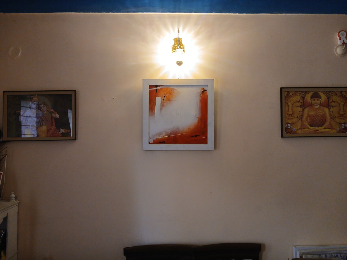 Welcome to our house with 2 rooms. This listing is for room#2 nestled on the second floor of a charming white bungalow, in the heart of Bhopal's Bhadbhada area. This stay offers convenient access to both nature & local attractions - 2 mins to MP STATE SHOOTING ACADEMY, 5 mins to Kerwa & Kaliyasot Dams, the Van Vihar National Park, Sair Sapata, & 3 mins to the lake near Taj Hotel. Separate entrance, parking, free tea & biscuits (morning time only), chargeable meals & more!