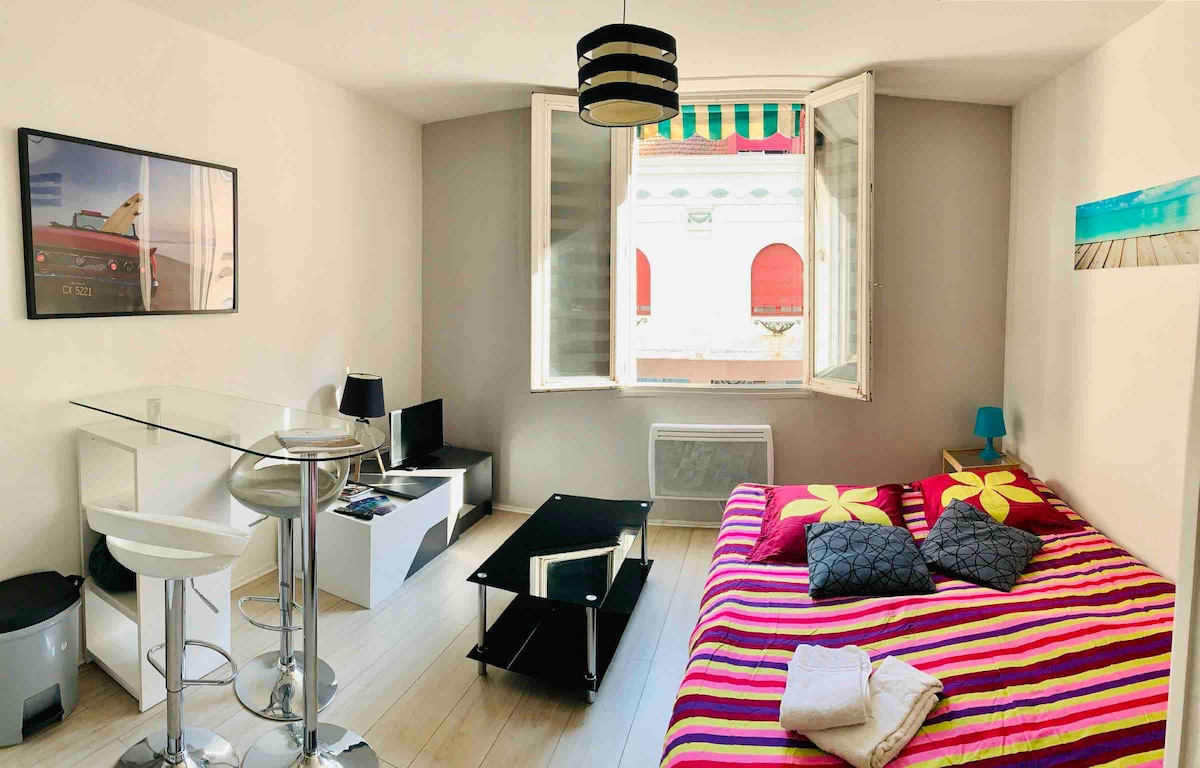 Apartment ideally located on a quiet street, a few meters from the large beach, Place Clemenceau and merchants.