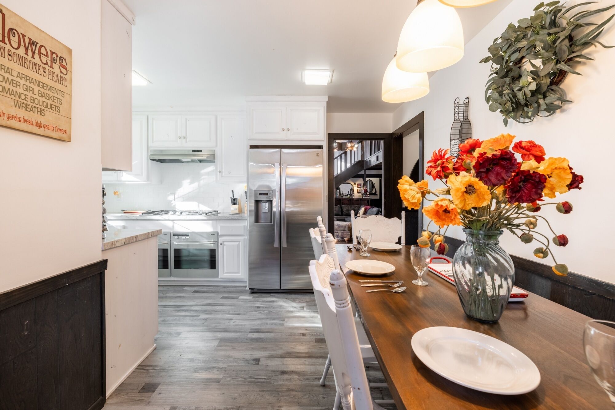 Dining area with table for six.