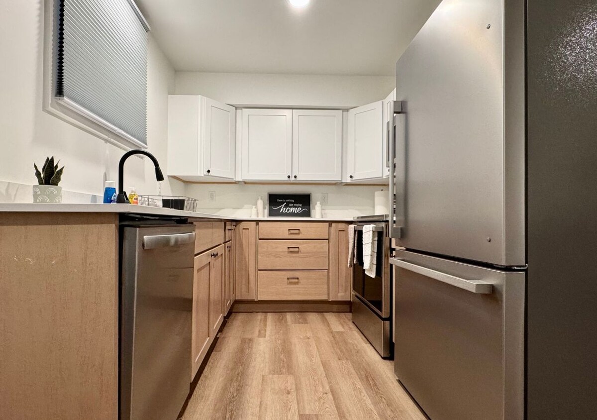 - **Modern Appliances:** Enjoy a full suite of stainless steel appliances, including a refrigerator, oven, stove, microwave, and dishwasher.