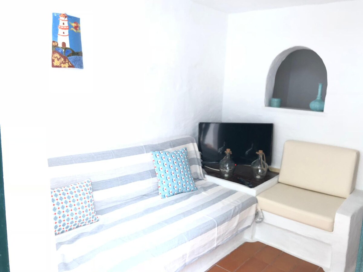 It has a fully equipped kitchenette, and dining-living room with access to a terrace with sea views.