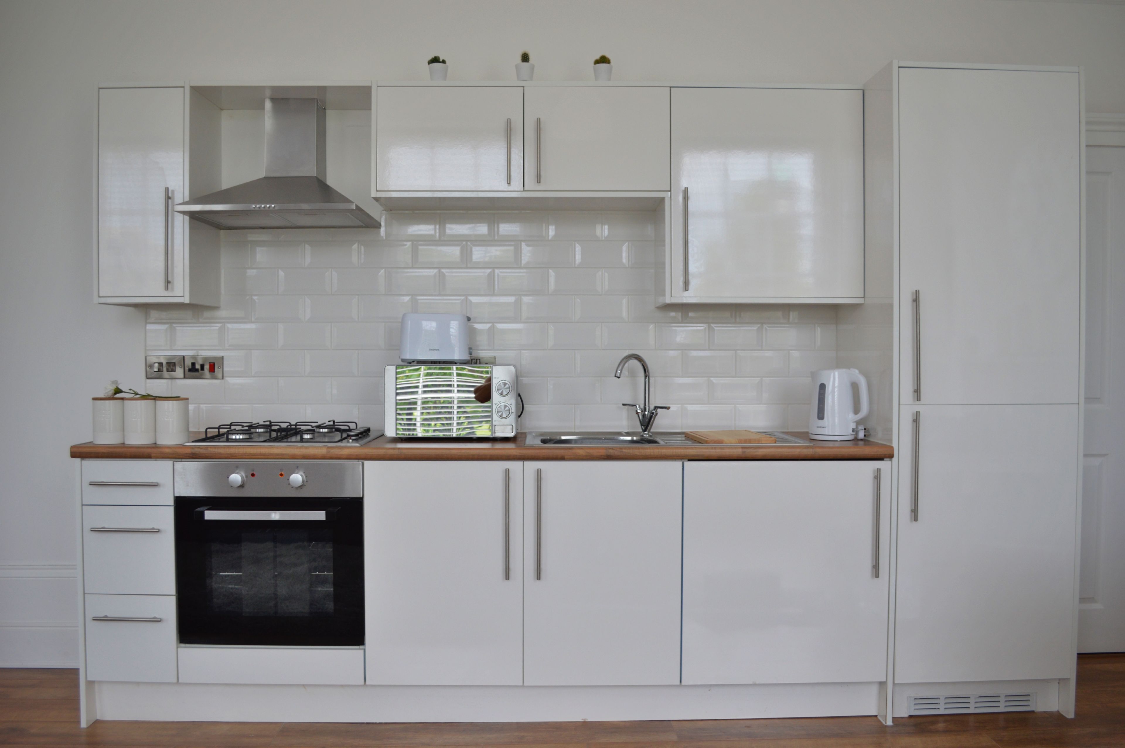 Fully equipped kitchen oven, hob, fridge freezer, dishwasher and microwave