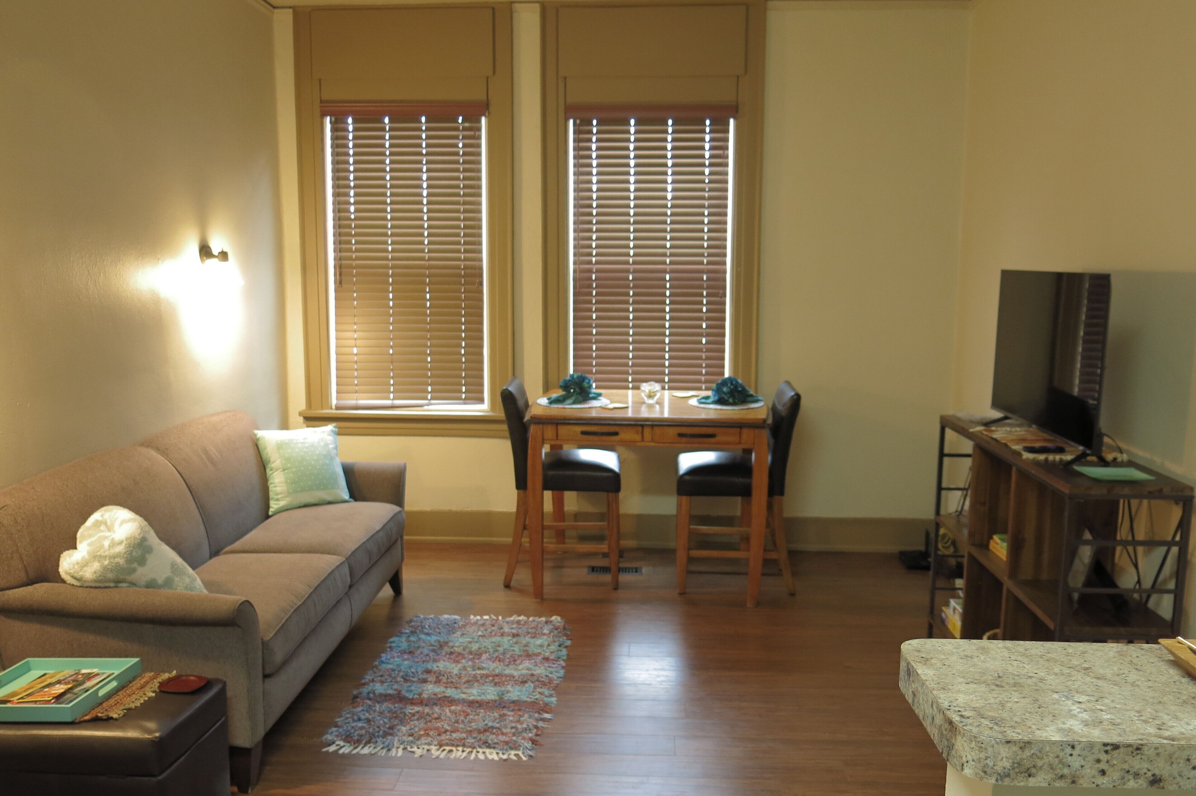 This special place is close to everything, making it easy to plan your visit especially if you like and want to live or hangout downtown. The apartment is renovated, clean, nicely and stylishly furnished. Open the door and bring your suite case this place is ready for you. The 75" TV is great especially during those cold temps in the winter. Washer and Dryer available on the same floor. This is a great place for anyone that wants flexibility and comfortability.