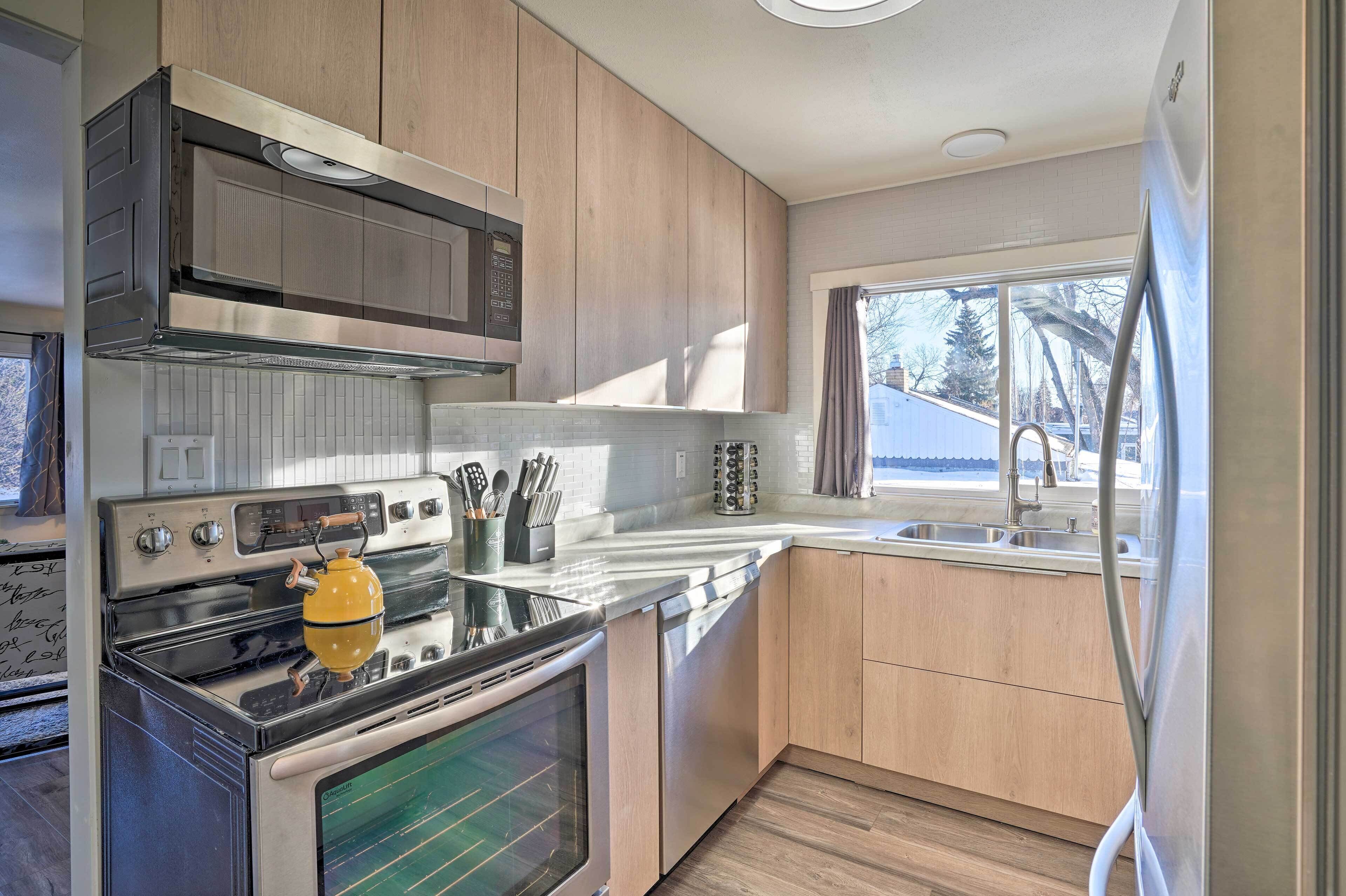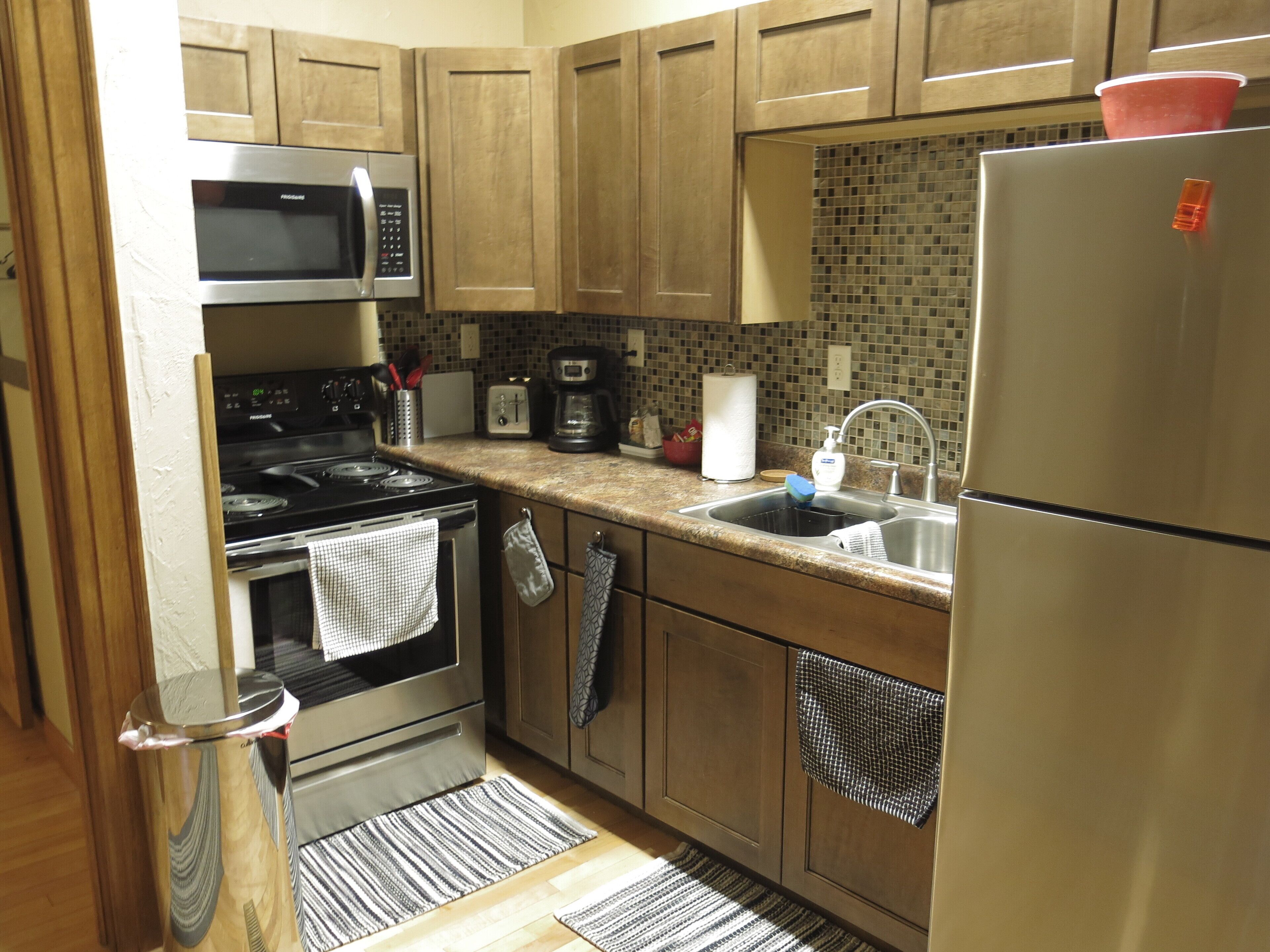 KITCHEN: Fully equipped, stainless steel appliances, coffee maker, toaster, knife set, spice rack, tea kettle