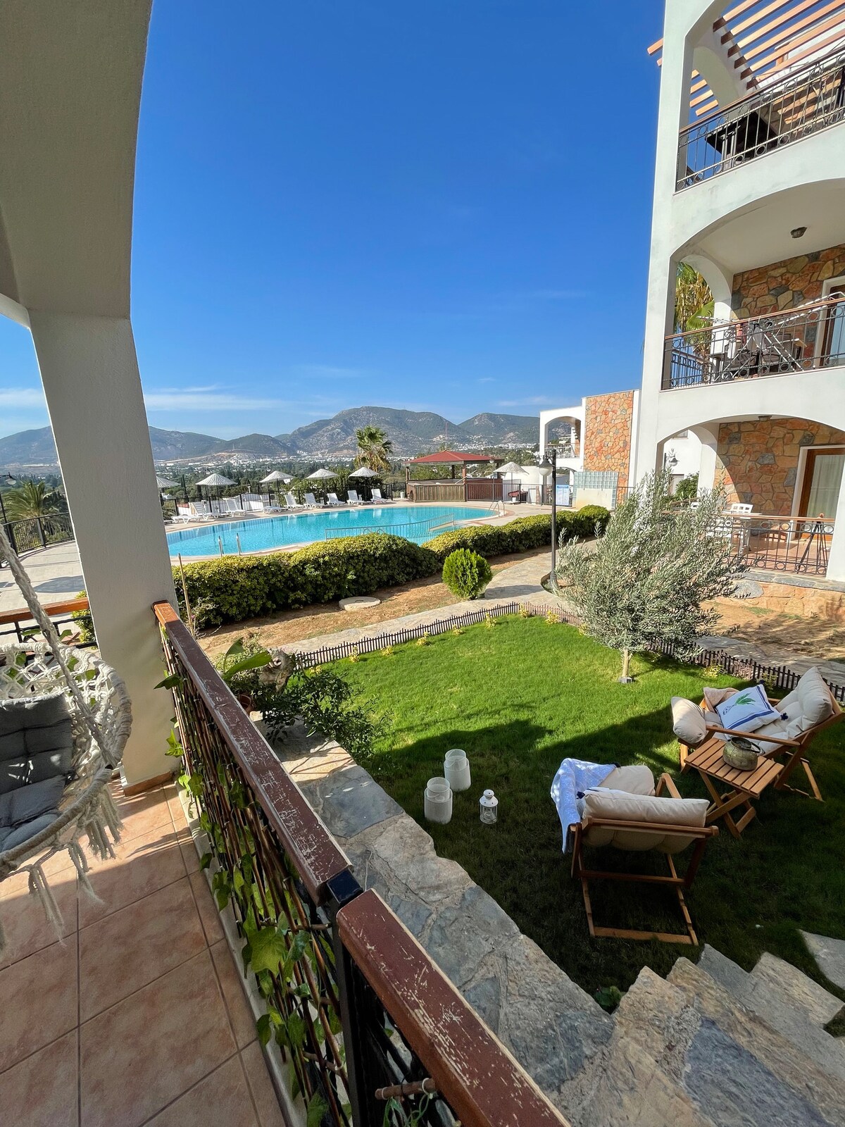 Wake up to the deepest blues of the Aegean sea, views you can see from your master bedroom adjacent to the terrace, walk to the Bitez beach which is 15 minutes walking distance, enjoy an afternoon tea on the back terrace in our enchanted garden watching the magnificent greenery of the lush Bitez valley and enjoy the sunset from the front terrace of this beautiful apartment. The apartment is on the top floor of a small 3-story building (only one set of stairs to climb) and has panoramic views from all the sides. The neighborhood is very friendly and the gated community is one of the top spots many locals choose to live because of its beauty, close proximity to Bodrum city center and security.