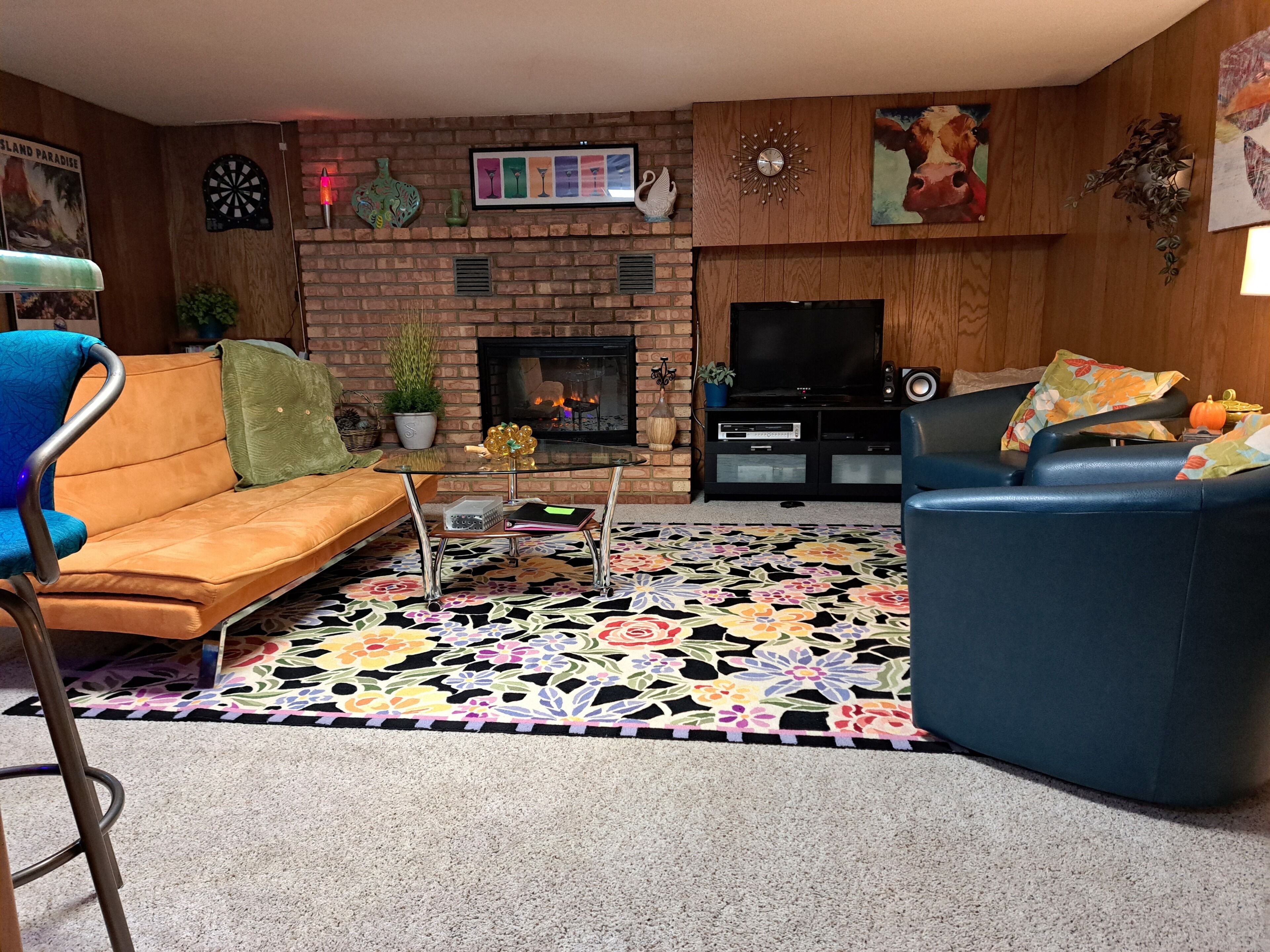 This is a mother in law apartment in the lower level of my house. Bright and colorful. Fun feeling of the mid 60s.