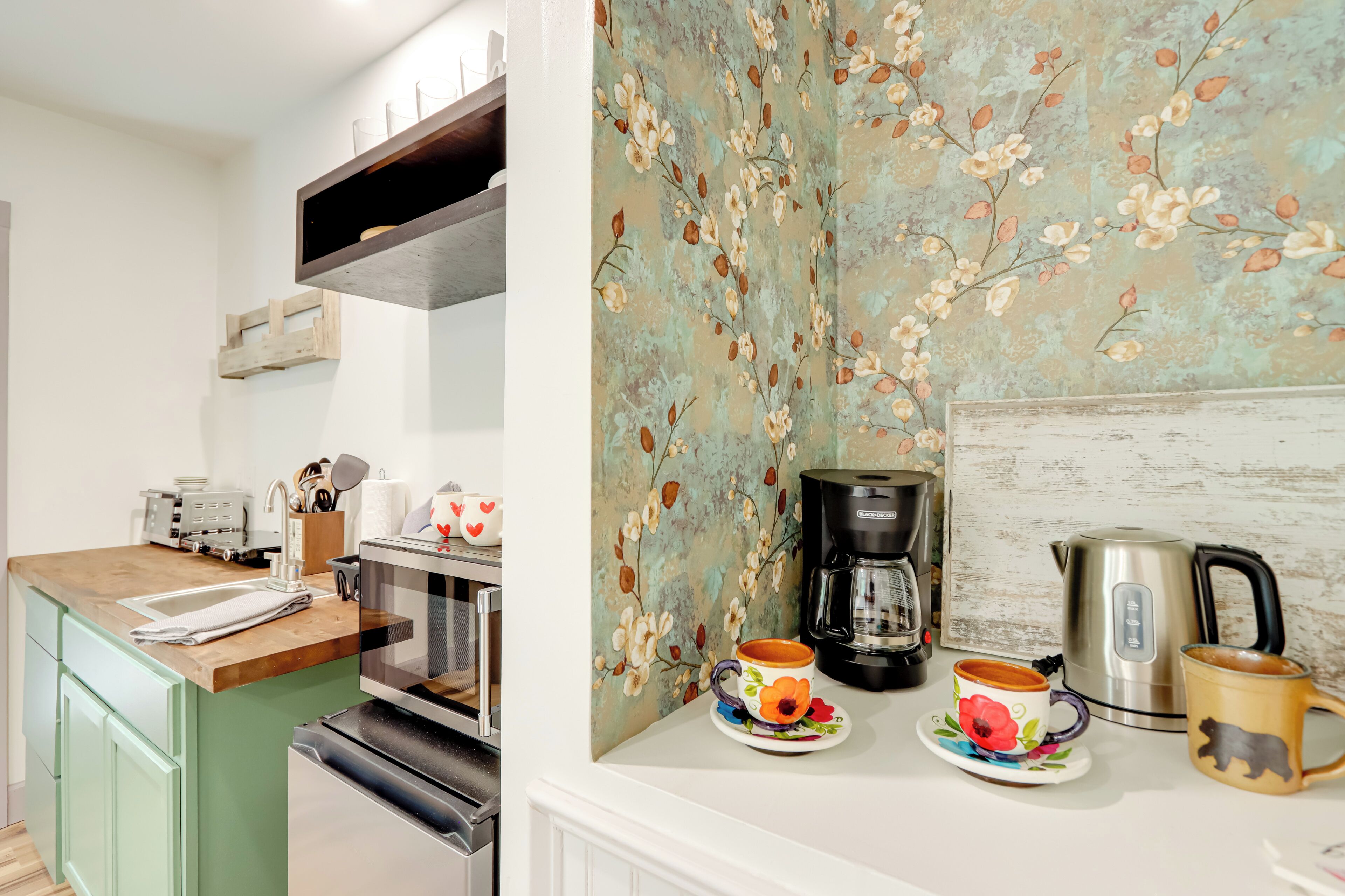 KITCHENETTE: Well-equipped w/ cooking basics, dishware/flatware, Keurig coffee maker, microwave