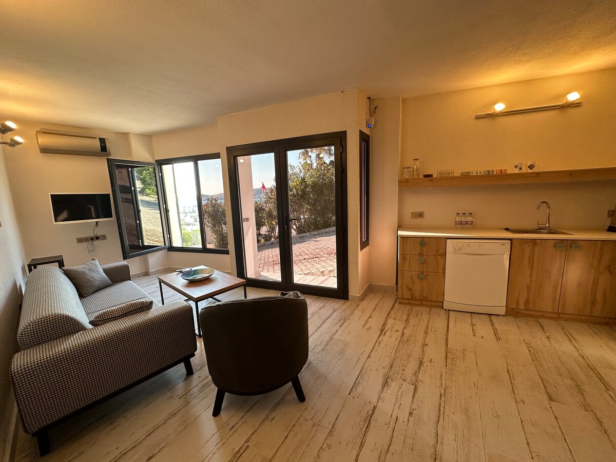 We were completely renovated with everything in 2024 and opened again in June. Air conditioning,no frost refrigerator,TV, dishwasher and washing machine are standard. We provide boutique hotel service from the comfort of home with our daily cleaning, hygienic pool, bar and restaurant. We are very centrally located, everything is 5 10 minutes walk away, you can go to the Bodrum marina in 20-25 minutes. Although we are close, we are away from the noise and chaos of Gumbet bars. I will wait.