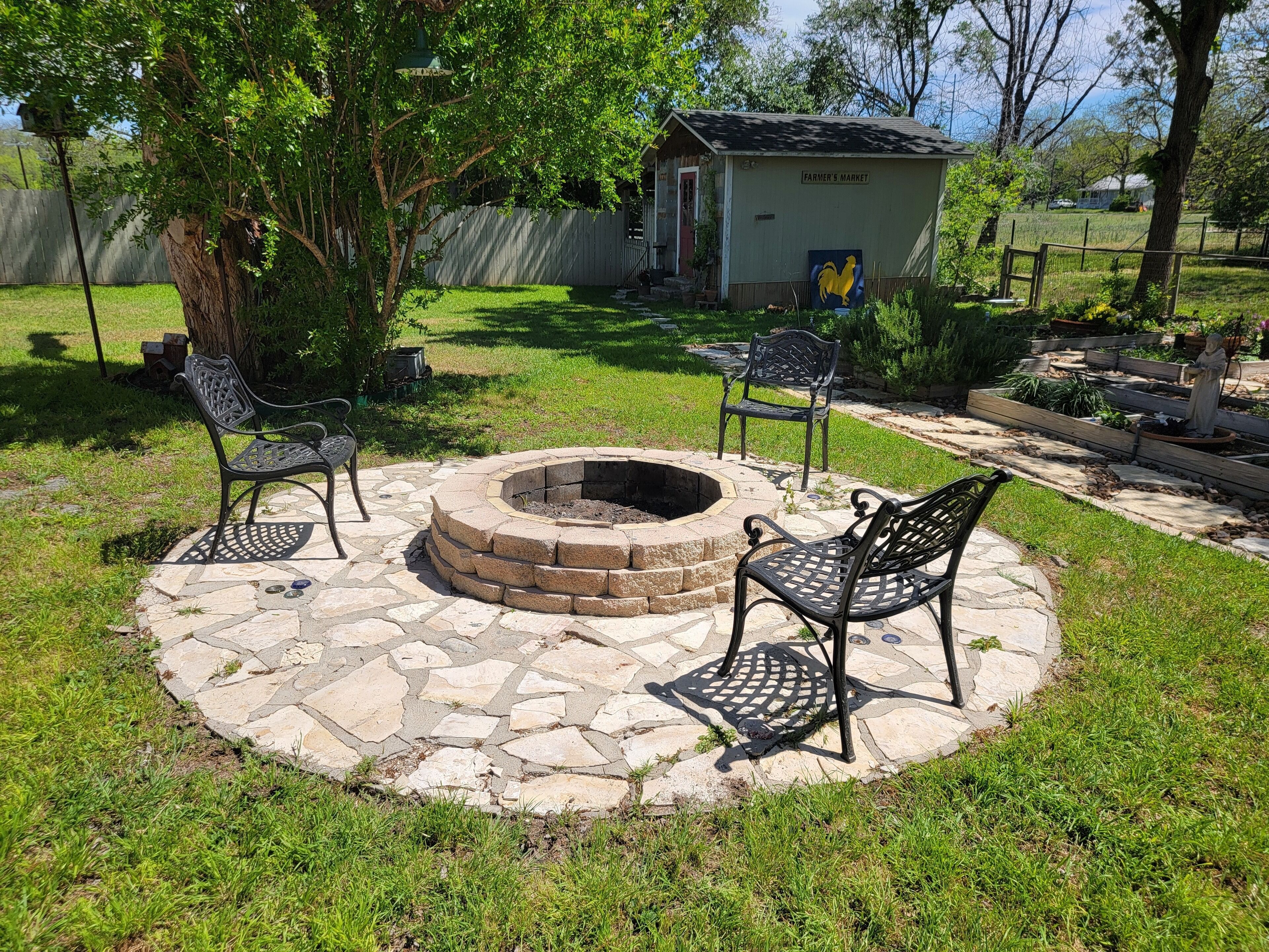 Also outside is a fire pit, seating and grilling area. Bring charcoal is you plan to grill!
