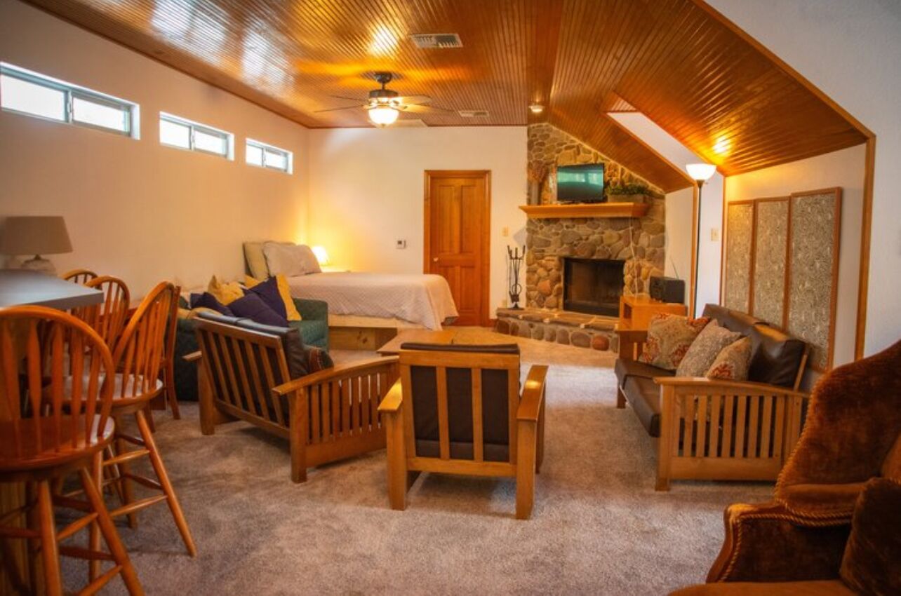 Escape to this beautiful apartment, the perfect getaway for relaxation and adventure. This charming retreat features a fully equipped kitchen for all your culinary needs, a comfortable bed to ensure a restful night's sleep, a cozy couch for lounging, a modern bathroom, a warm fireplace to unwind by, and a delightful patio for enjoying the outdoors. Located less than a mile from Main Street, you’ll be within easy walking distance of all the local attractions, shops, and restaurants.