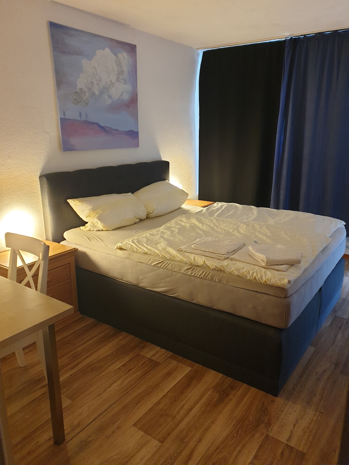 Comfortable apartment with bathroom with shower/WC, TV, small fridge, tea/coffee station and fast WLAN in a prime location in Bonn Bad Godesberg city center for rent. Both the Godesberg city center and the train station are within walking distance. The apartment is cleaned weekly by us and provided with new linen (towels and bed linen). The rental period is at your discretion, but is at least one month.