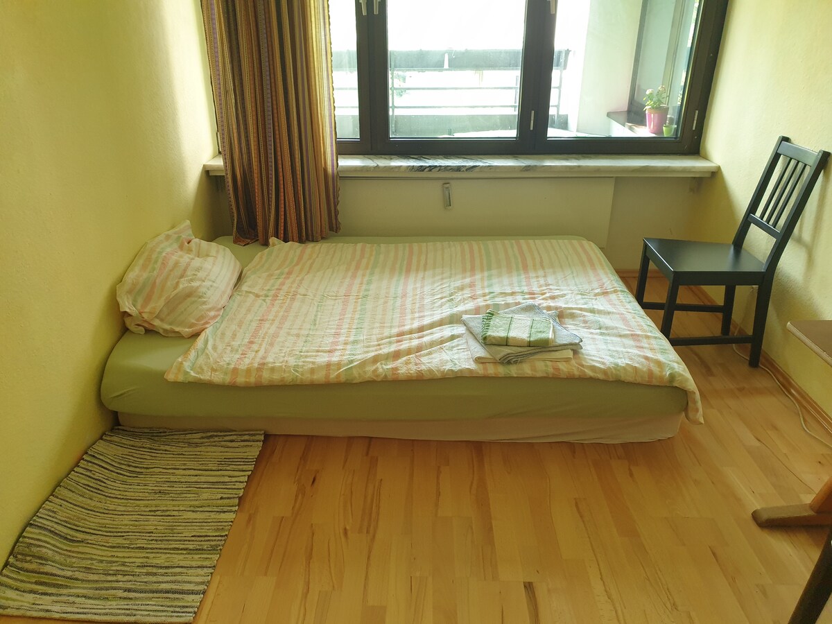 Since our apartment is too big for us, we offer this room for guests. We live on the second floor and this guest room is located directly opposite the entrance door. We have two bathrooms, so usually everyone has their own bathroom. My apartment is quite big. We also have two balconies. Please note our two guinea pigs. They are our pets. They usually stay on the second balcony. But guests can cuddle with them a little bit.