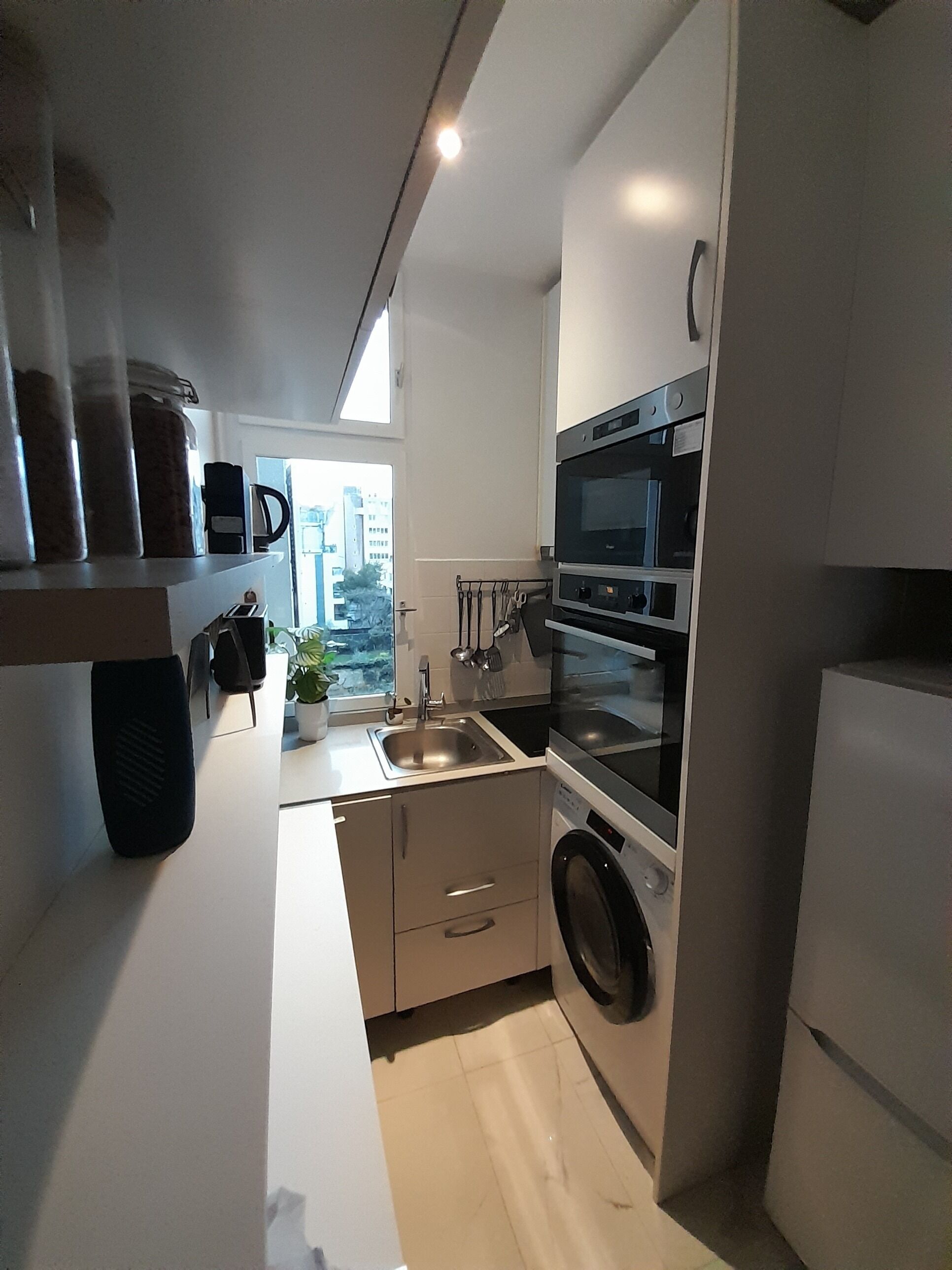 You will have access to wifi, a printer-scanner, a table and two chairs, a fully equipped kitchenette, a bathroom with washing machine and a very large sofa bed composed of two real mattresses.