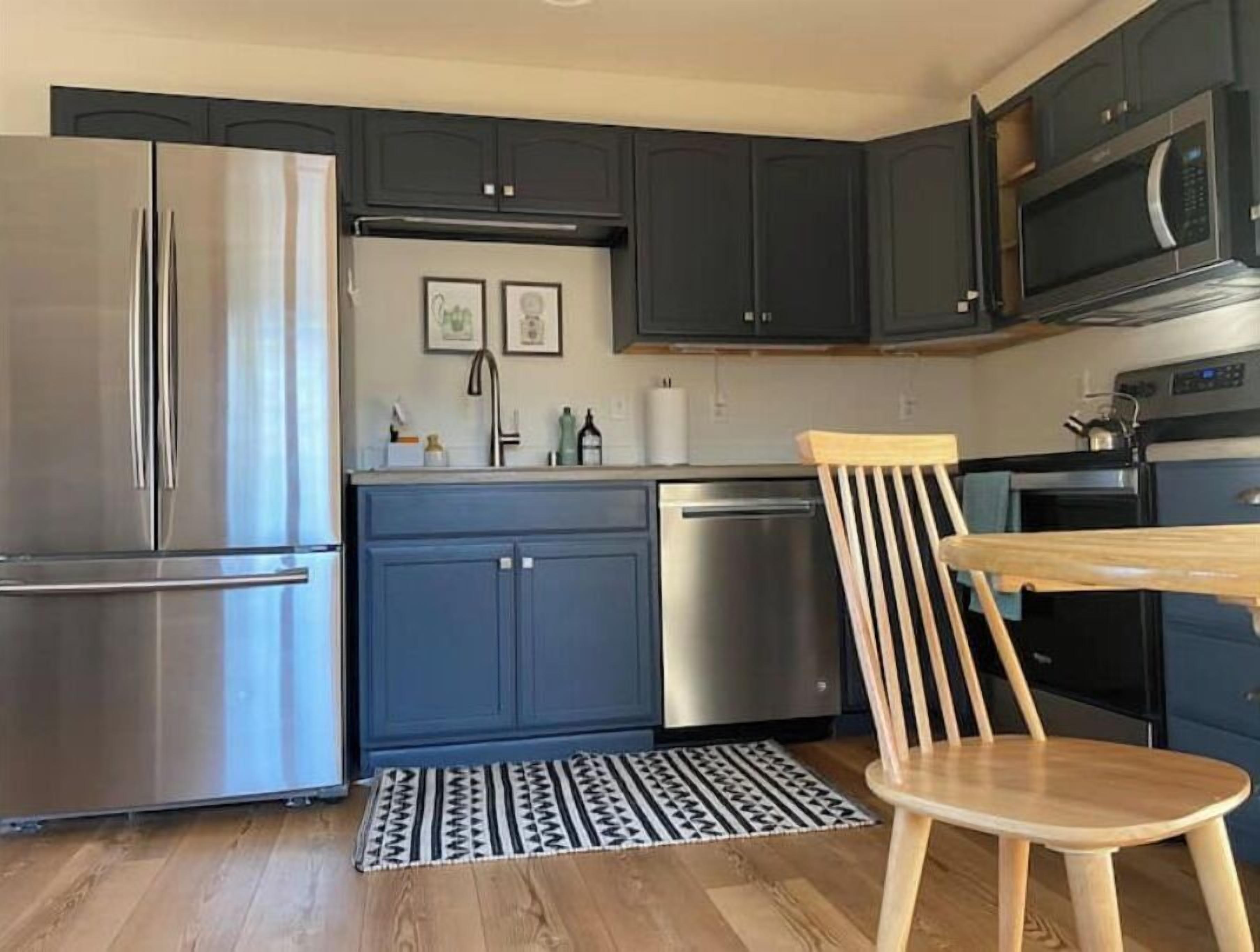 The apartment has several large closets, making it ideal for longer-term stays. The kitchen is fully outfitted for cooking, baking and coffee breaks! It has a private entrance and indoor stairs-- a welcome feature on icy nights.