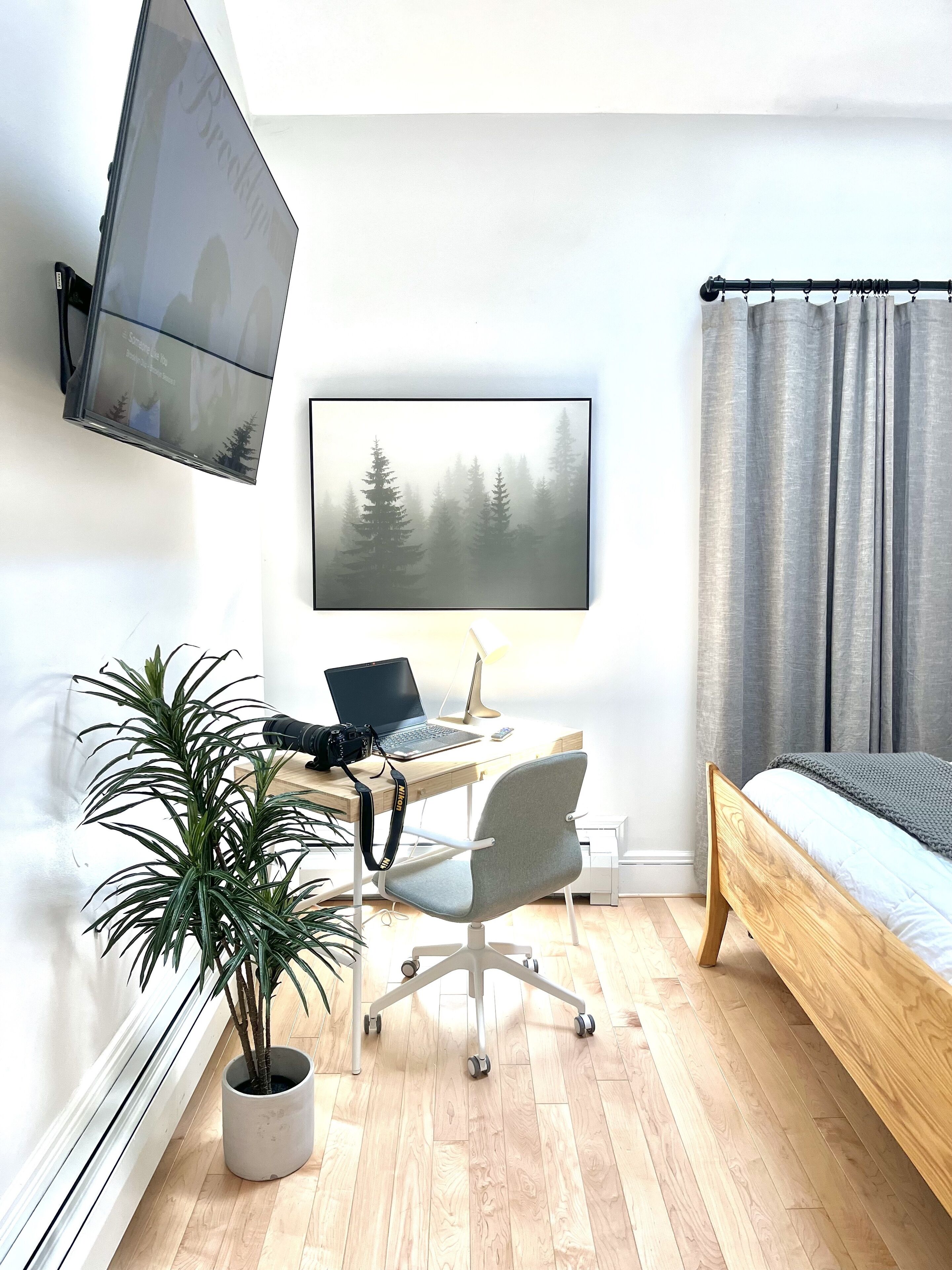 A large closet and storage space separates the sleeping area from the living area, and there you'll find a gorgeous locally made solid wood queen bed with premium linens, and 55in smart TV.