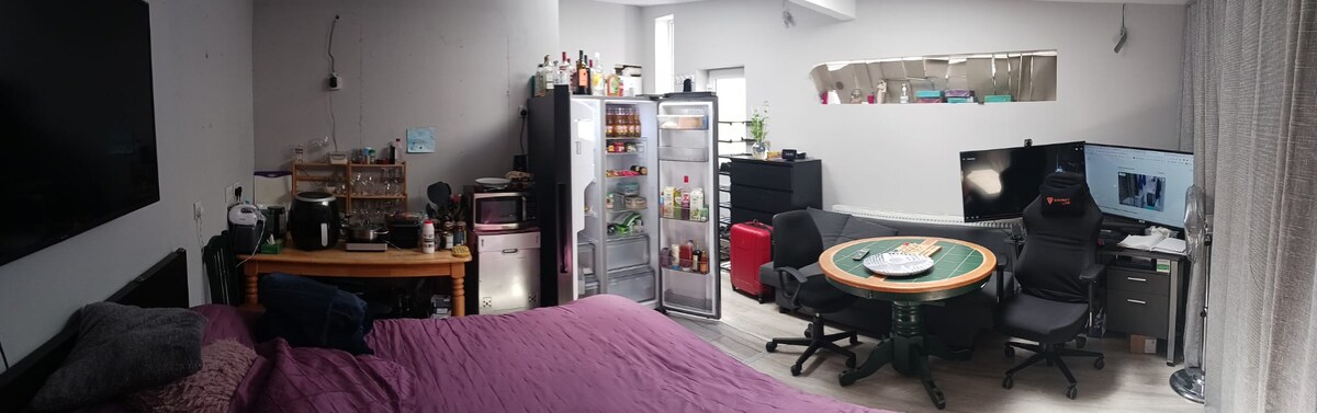 Studio is attached to our main, busy family home, own entrance, bathroom etc.