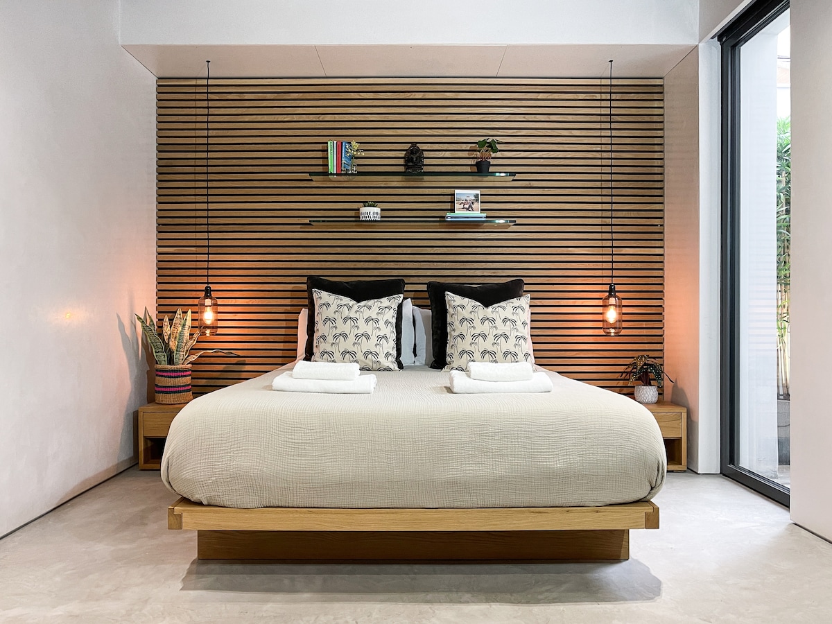Perfect for our guests needing to stay a little longer, our cool, stunning, zen retreat offers an extraordinary home away from home. Immerse yourself in the harmonious blend of luxury, tranquillity, and high-tech convenience for a 5-star experience.