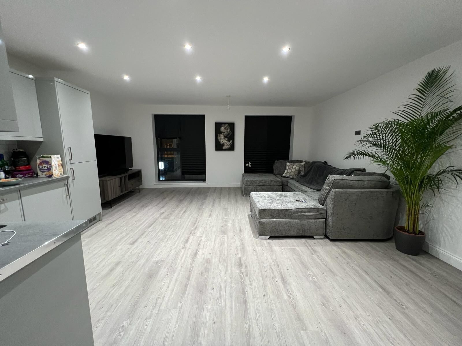 Open plan reception with modern fully fitted kitchen, two bedrooms, both with king Beds