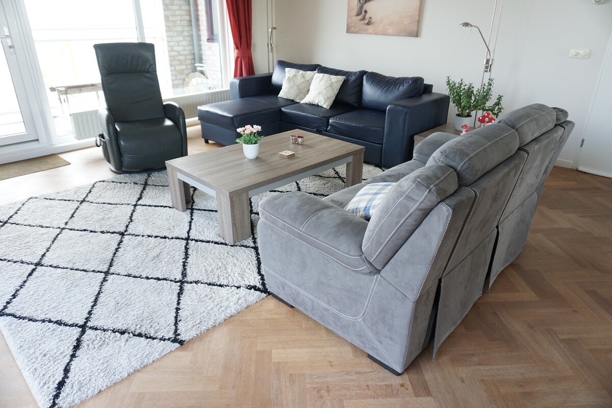 From the living room you can access the balcony that continues to the side of the apartment. This way you can always find an amazing spot to admire the view over the Westerschelde, the North Sea and the marina of Breskens. Enjoyment guaranteed!