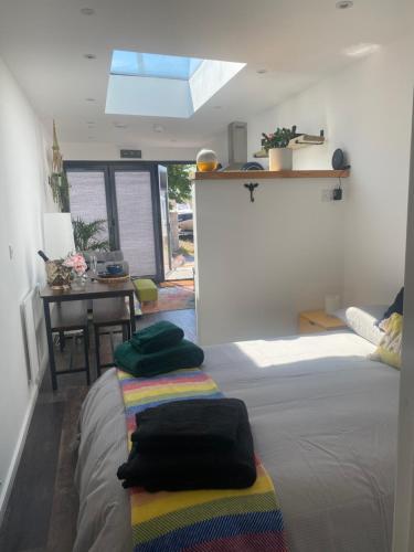 Kick back and relax in this calm, stylish space. The annex comprises an open plan living area, with a lounge and kitchen area. A separate bedroom and bathroom with a shower. (no bath). Newly decorated, modern and fresh. Everything you need for your home away from home experience. The bedroom has small double bed, with sofa bed in the lounge. The property can accommodate twin sleeping if required. Bedding, towels and toiletries are provided. You are welcome to use our shared garden area.