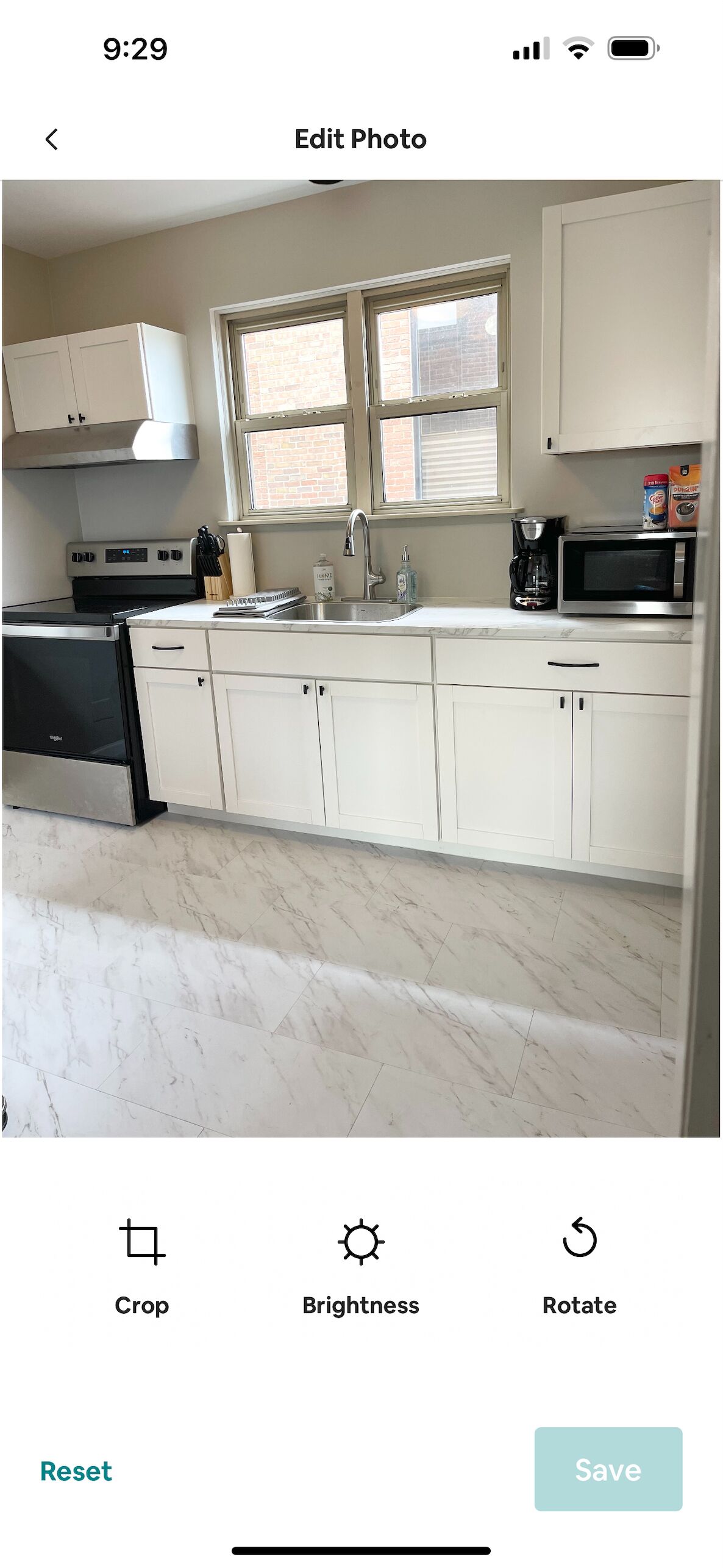 Step inside to an airy, open layout with warm hardwood floors and abundant natural light. The inviting living room features a plush sectional sofa, cozy armchair, and a 50" Smart HDTV, perfect for relaxing after a day of exploring. The fully renovated galley-style kitchen is equipped with stainless steel appliances, modern cabinetry, and all the cookware you’ll need — whether you’re brewing morning coffee or preparing a full dinner.
