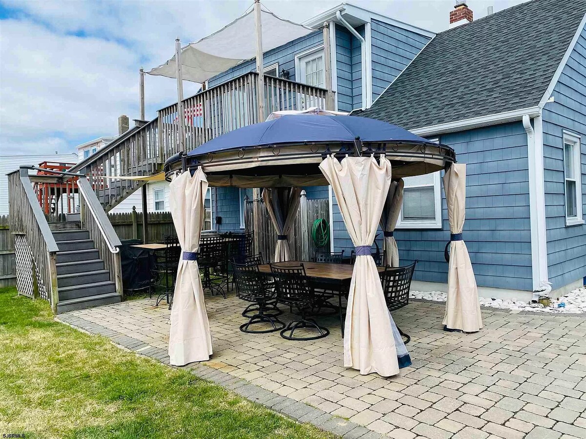 Enjoy home away from home in gorgeous Brigantine! A 2nd floor retreat that’s a 5 min walk to the beach and steps away from sunset views at the bay! 6 beach tags, beach cart, chairs, and umbrella provided. 2 bedrooms with queen beds, 2 sleeper sofas, living room, sitting room, spacious kitchen. Washer/dryer, dining deck, shared backyard with fire pit, outdoor shower. Toys, games, and 10-in-1 games table. Smart TV in each bedroom. Electronic lock, Ring doorbell, A/C, linens and towels provided.