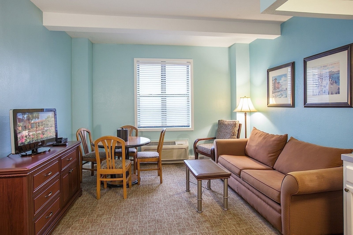 Located directly on the white sandy shores of Brigantine Island, our historic beachfront resort is close to all the action. Enjoy a stroll on the charming boardwalk or tee off on a championship golf course. Onsite, guests will enjoy spacious studio and one-bedroom suites, along with a heated indoor pool, saunas, and a seasonal ocean-view restaurant.