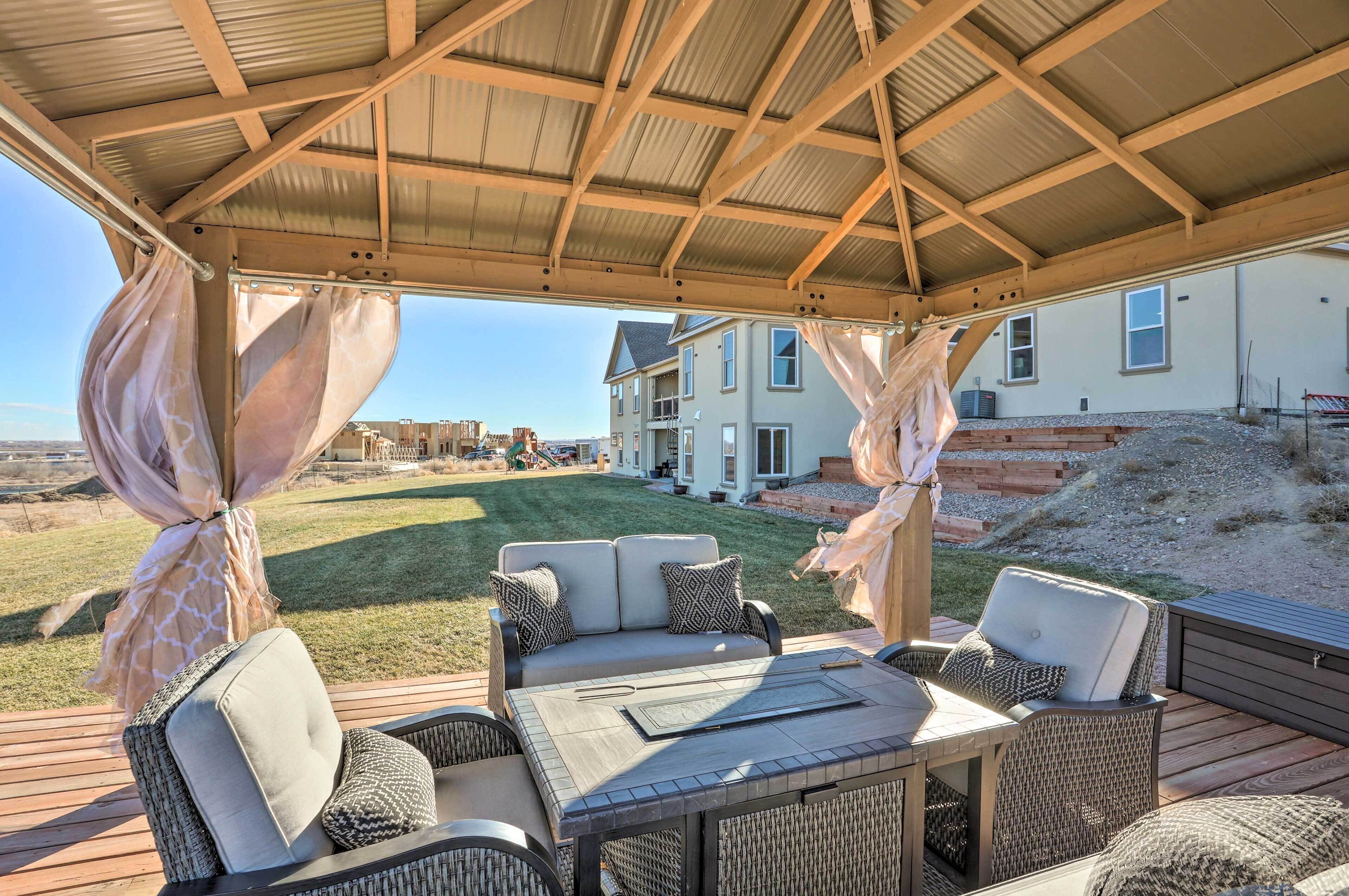 - Gazebo w/ gas fire pit & cushioned seating