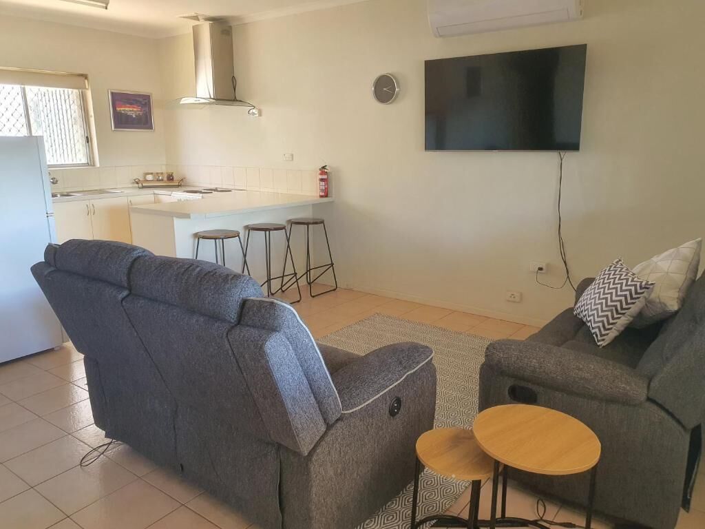 situated in mining town full of history and local arts. home of greats such as Pro hart, Brush men of the bush. Also magnificent sculptures from artist around the world. Big screen tv, split Aircon units fitted, generous size open lounge and kitchen. outside ample parking area.
