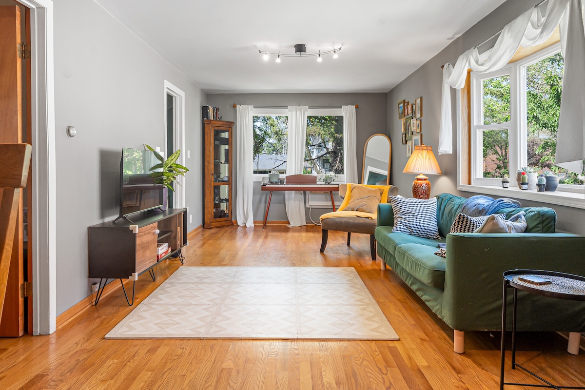 Private first-floor apartment recently renovated in charming downtown Berwyn/Oak Park/Forest Park/Riverside area. Just 10 min to I290 & the Blue Line Train. Close to tons of shopping & restaurants. Just 5 minutes to Forest Park & Oak Park. We are conveniently located just 20-30 minutes from downtown Chicago & Midway Airport, with easy transportation via buses, trains, & expressways. This suite is perfect for couples, business travelers, & solo guests. 1 parking spot is provided.