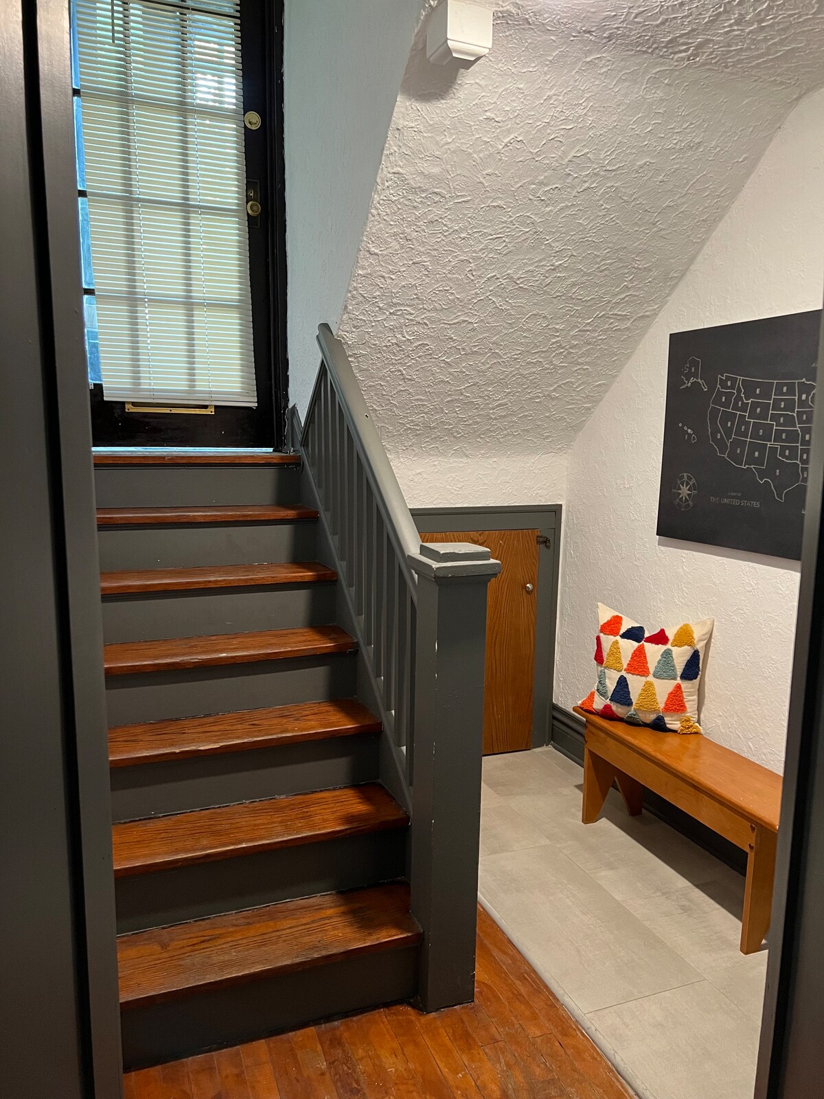 - "Located in an older building, the place has been newly renovated. It’s still an older building so there are quirks which give it personality. The biggest drawback were the stairs. We enjoyed the nearby restaurants and being within walking distance of our son’s home. " - "Steep stairs to property. There was a lot of construction at the entrance to the property. It also was not clearly numbered and we were at the wrong door. Very clean and nice once you get to the apartment. Parking very inconvenient. "
