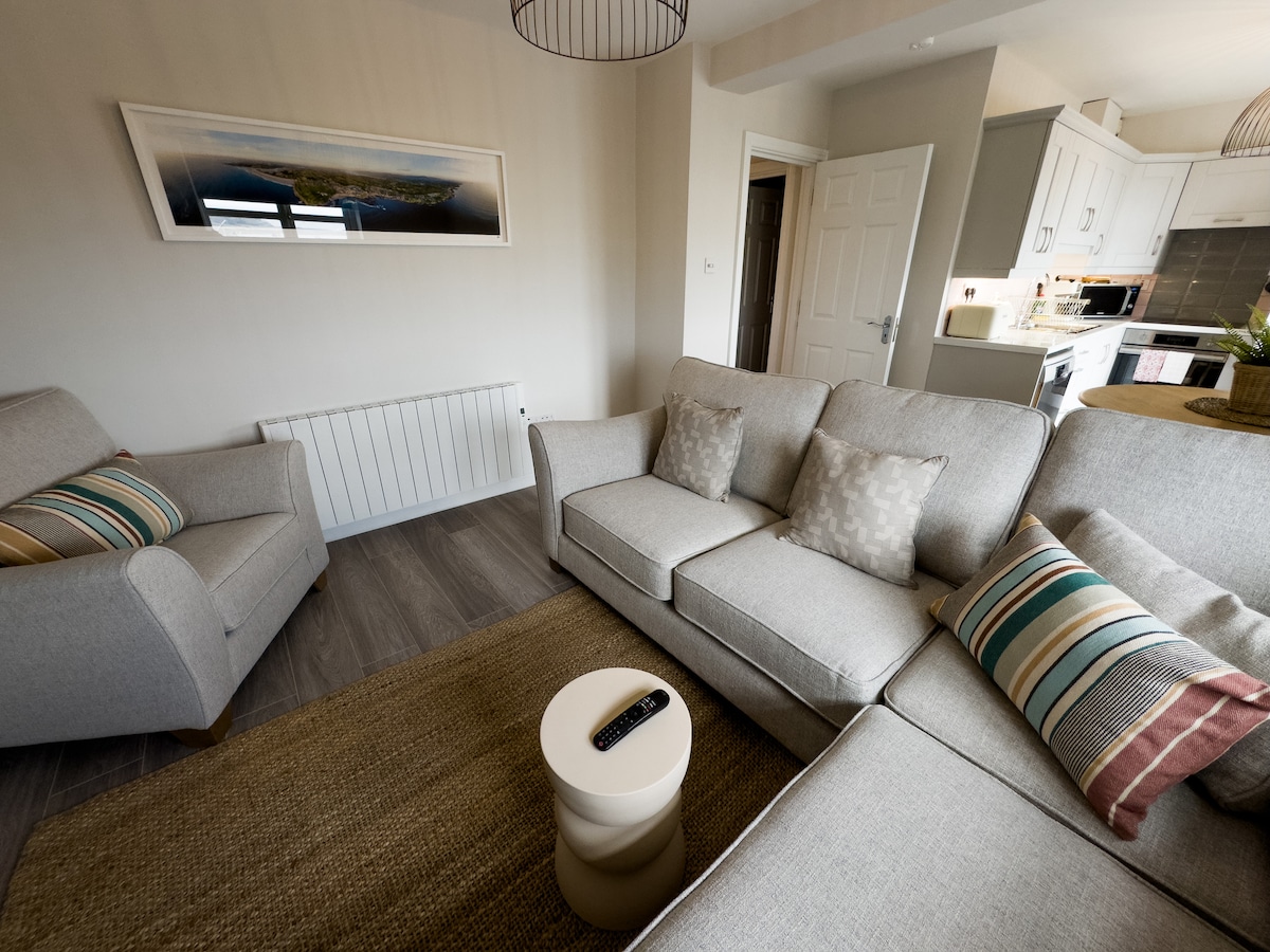 Discover this elegantly refurbished two-bedroom apartment at Main Beach, next to Waterworld and Bundoran Adventure Park. With opulent furnishings and sumptuous bedding, your comfort is our priority. Enjoy the private balcony with sea breeze. In the town centre, this unique gem offers all modern conveniences: high-speed 5G WiFi, streaming, and more. Fall in love with this sleek retreat and its captivating wave views.