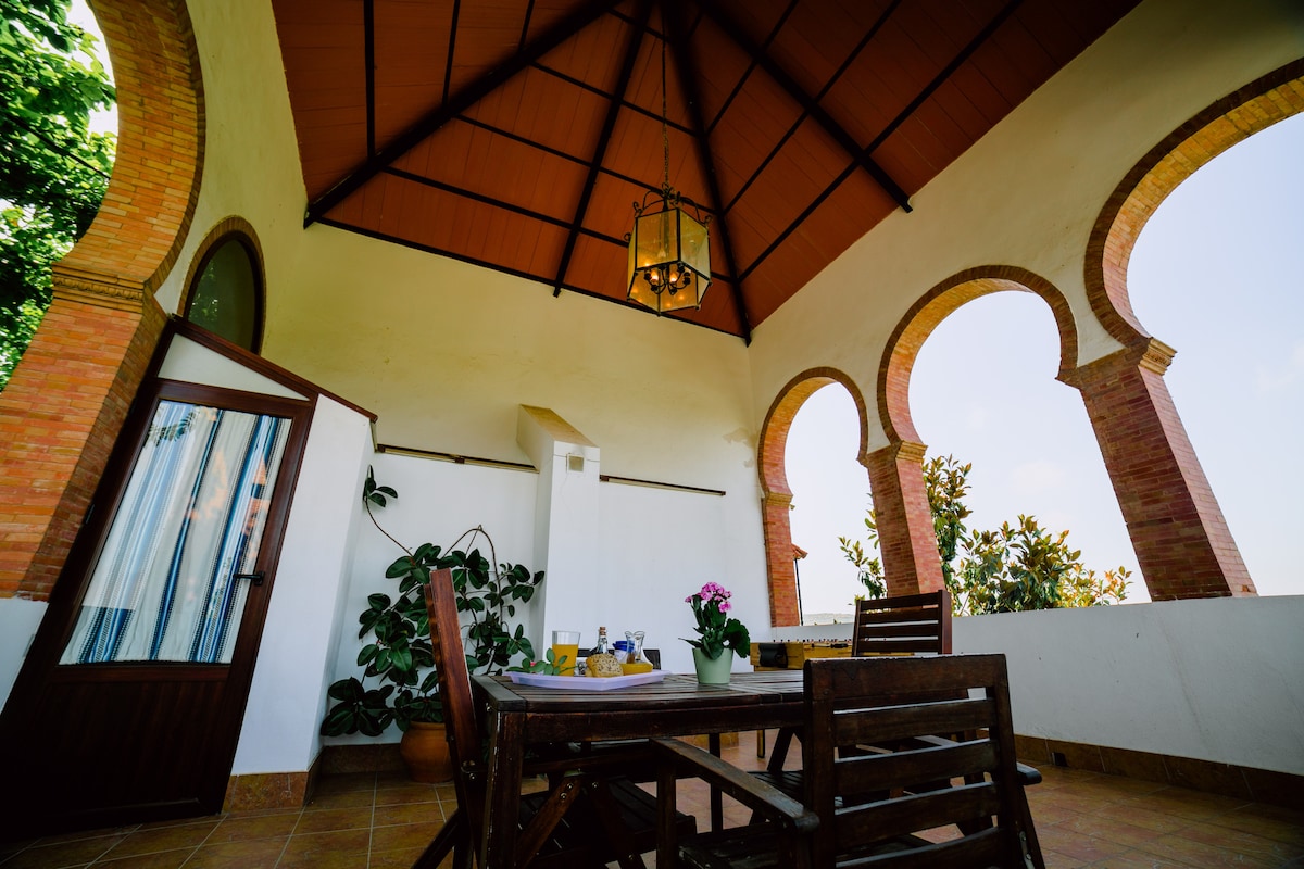 The cortijo has a rectangular floor plan with a large central landscaped courtyard, with a set of twelve apartments being located around it. Typical architecture, with two waters, covered in Arabic shingle and predominance of lime. My accommodation is good for families (with children), big groups, and pets.