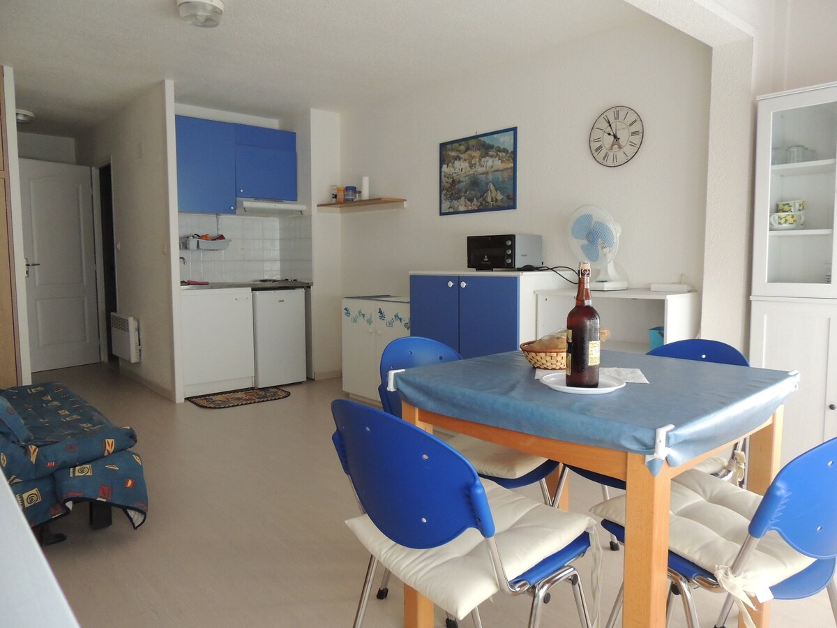 Studio located on the second and last floor of a building in a residence behind the Calvi pine forest. Living room with double sofa bed, equipped kitchenette, bathroom with shower and bidet. Bunk bed.