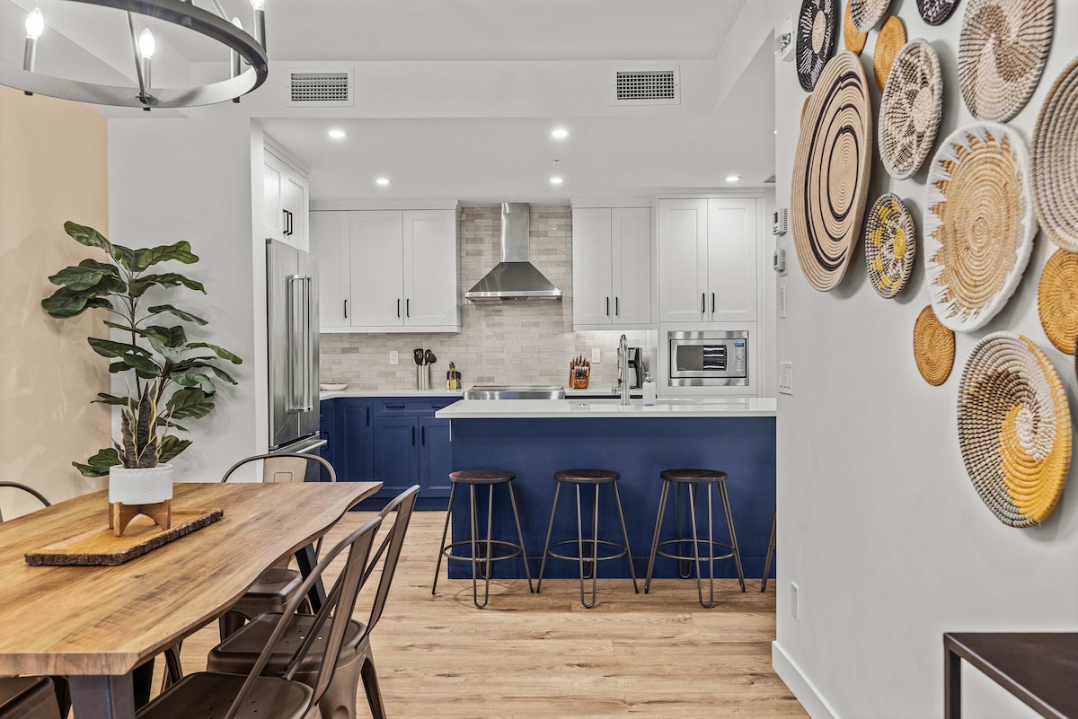 Unwind in the bright living area, enhanced by large windows that invite natural light. The home is thoughtfully designed with modern amenities: a wine fridge, granite and polished concrete countertops, & stylish furnishings. The spacious bathrooms offer a luxurious rain shower.