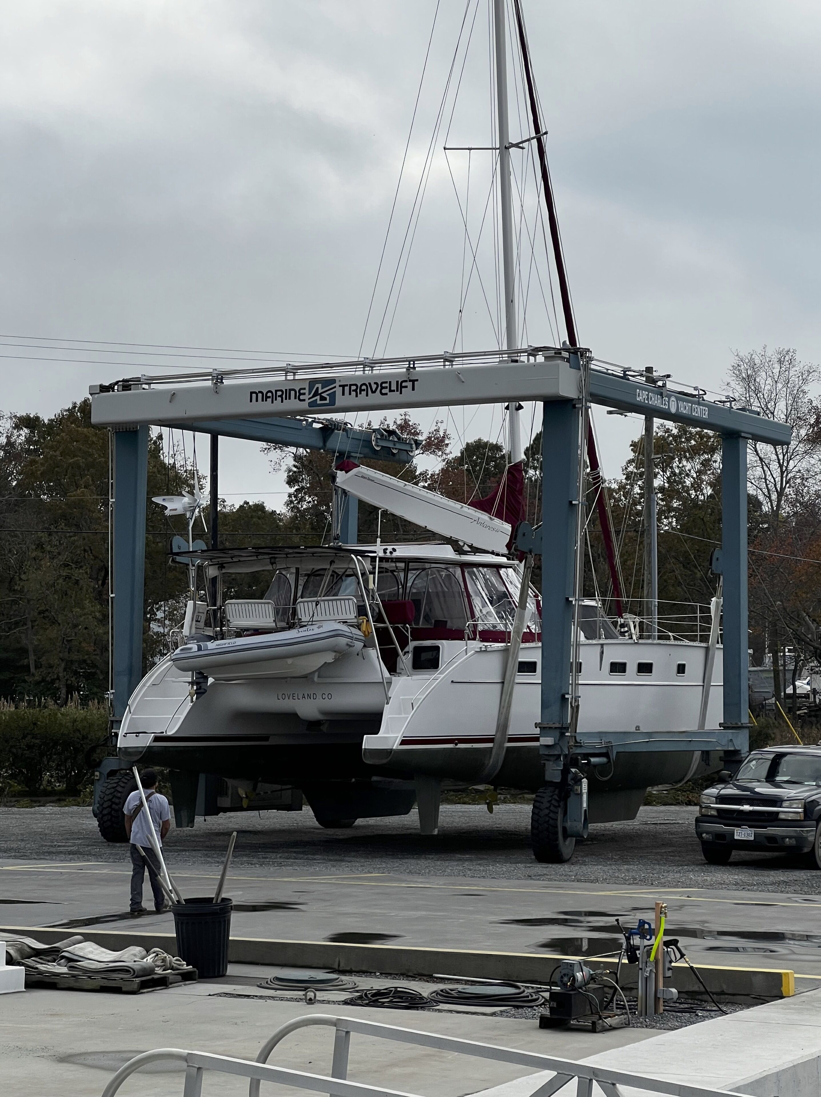 Spacious, beachy furnishings include a king bed, dresser, sofa, coffee table, new Smart TV, basic kitchen equipment, microwave, small refrigerator, ice maker, hot plate, grill, coffee maker, and toaster oven. The large deck has outdoor seating for four and a barbecue grill and a table. The spacious bathroom has luxury shampoo, conditioner, and body wash in the shower. Towels and bed linens are provided. For passing the time, watch our amazing marina team haul and launch some of the largest vessels on the East Coast.